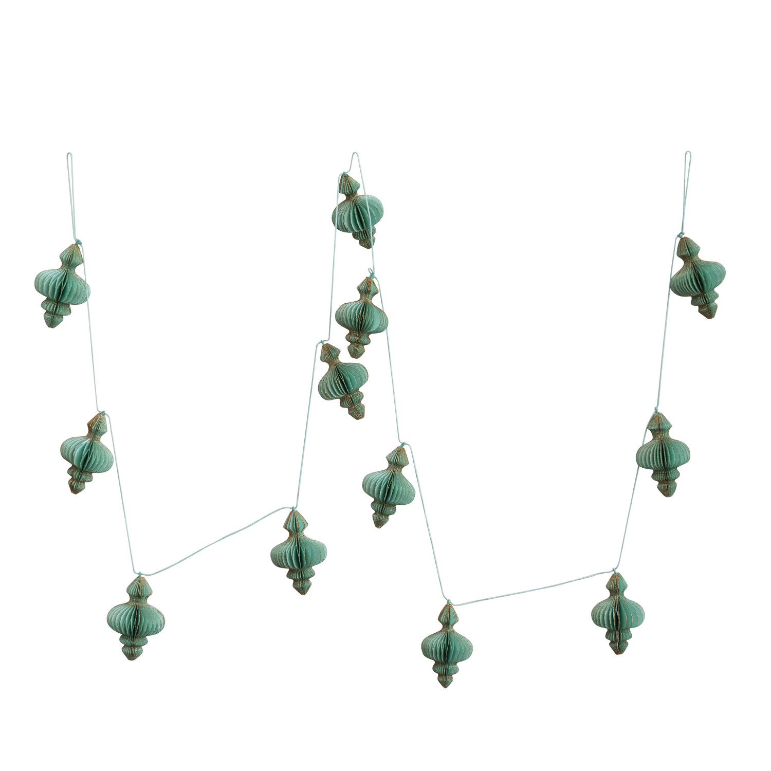 This festive garland features intricately handcrafted recycled paper honeycomb finial shapes finished with gold glitter. Add a touch of festive whimsy to any space with our enchanting collection of garlands, including stunning glass, sleek metal, and delightful mixed-material options, all expertly crafted to create a merry and bright atmosphere.