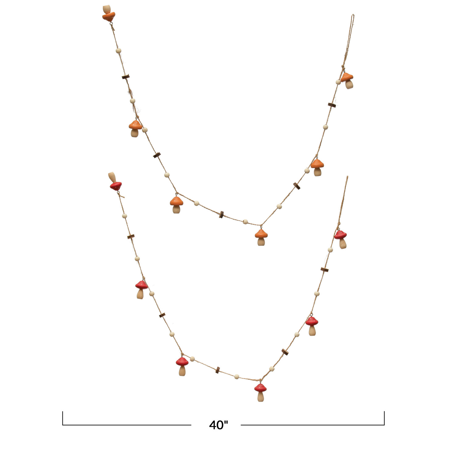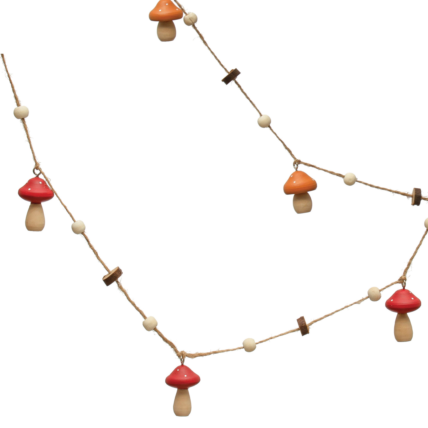 Catalog Name: 40"L Pine Wood Mushroom Garland, 2 Colors