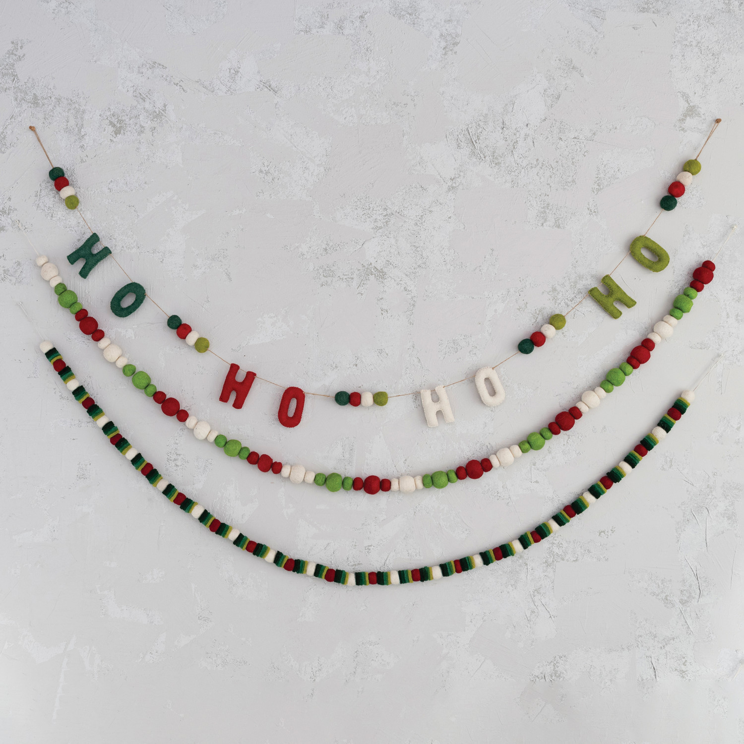 Catalog Name: 72"L Handmade Wool Felt Ball Garland, Red, Green & Cream Color