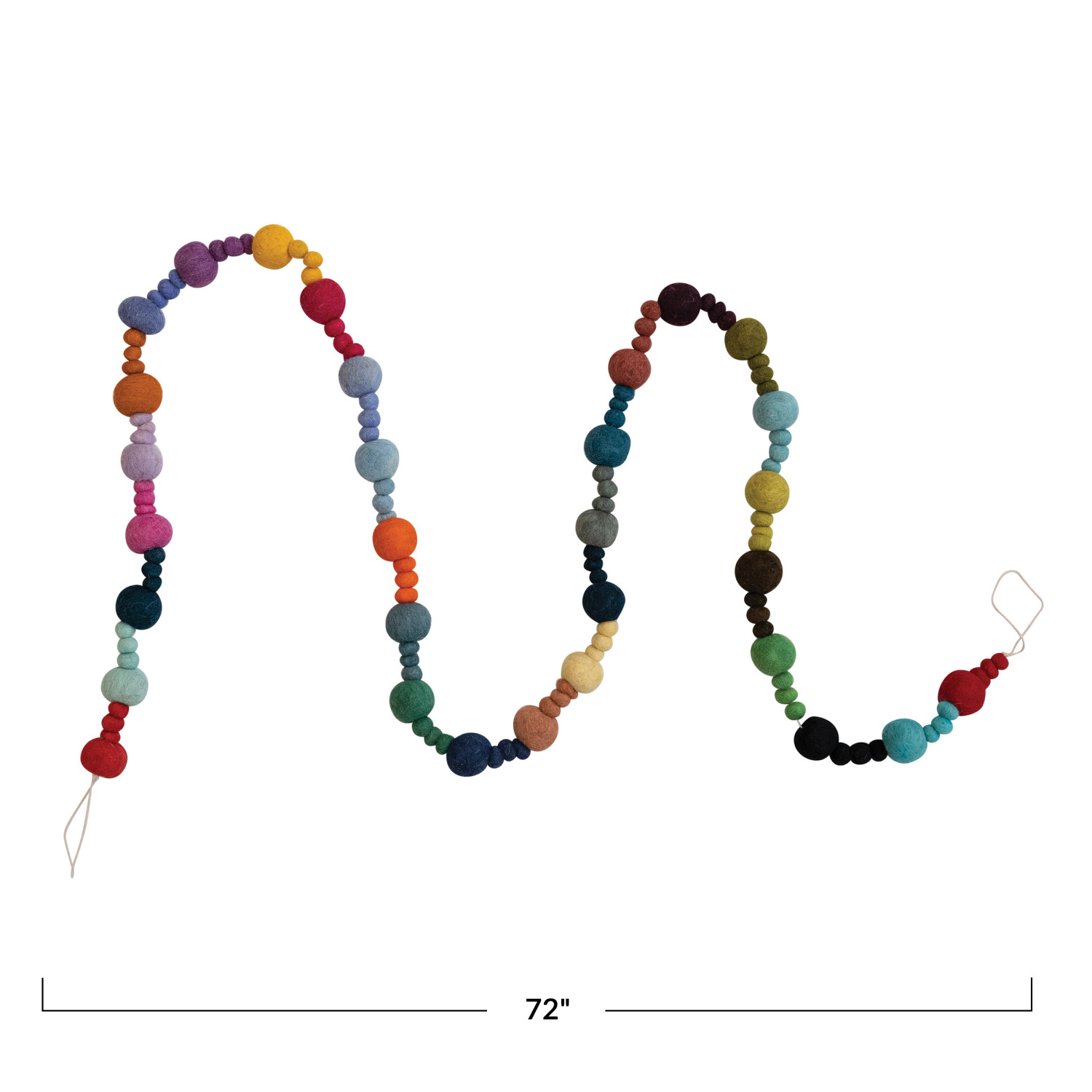 Catalog Name: 72"L Handmade Wool Felt Ball Garland, Multi Color