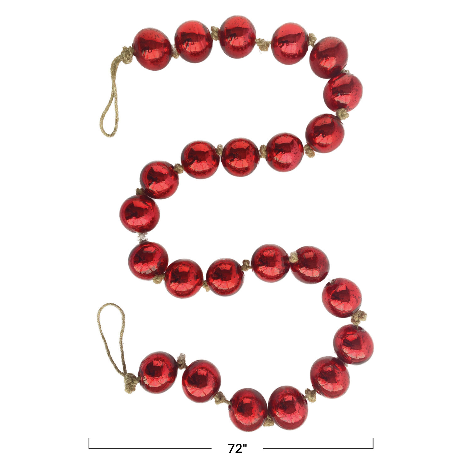 Catalog Name: 72"L x 2-1/2"H Recycled Glass Ball Ornament Garland w/ Jute Cord, Red