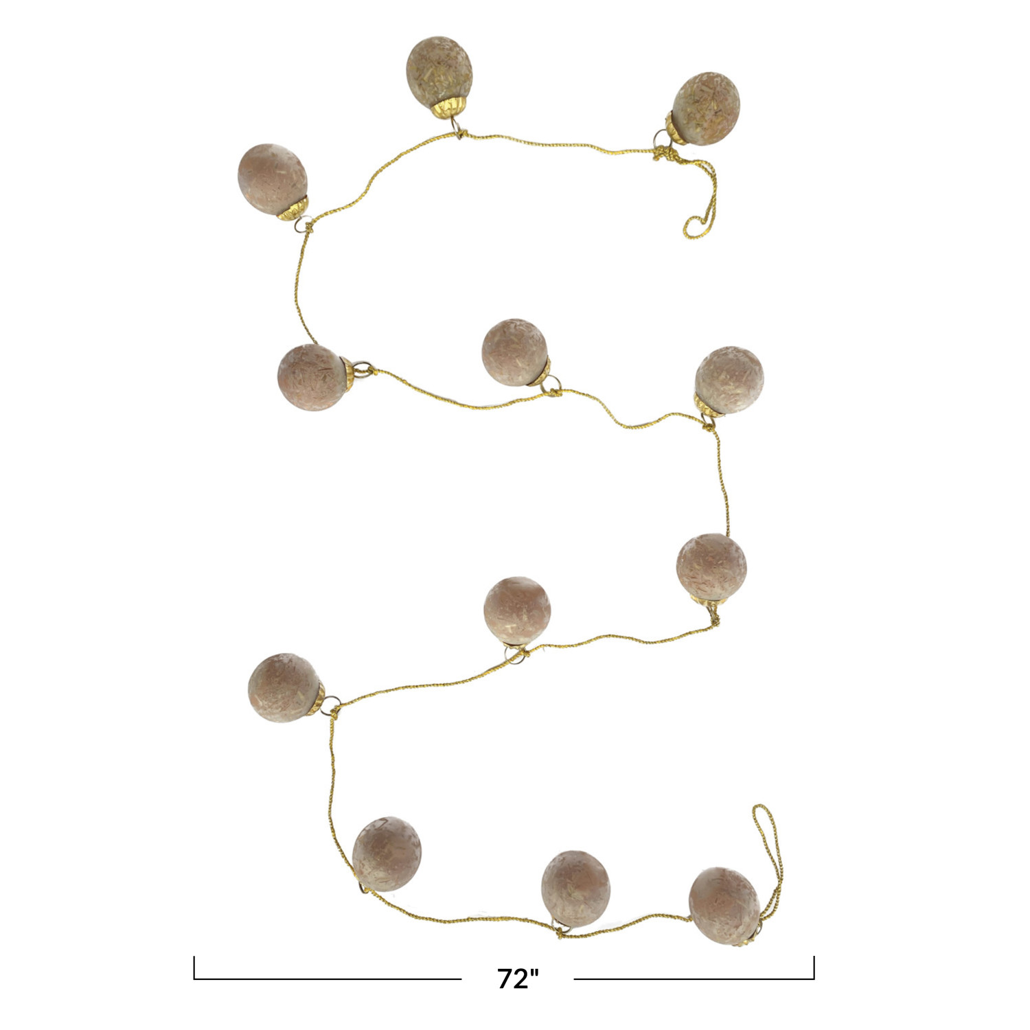 Catalog Name: 72"L x 2"H Glass Ball Ornament Garland w/ Embedded Natural Hay & Gold Cord, Matte Pink