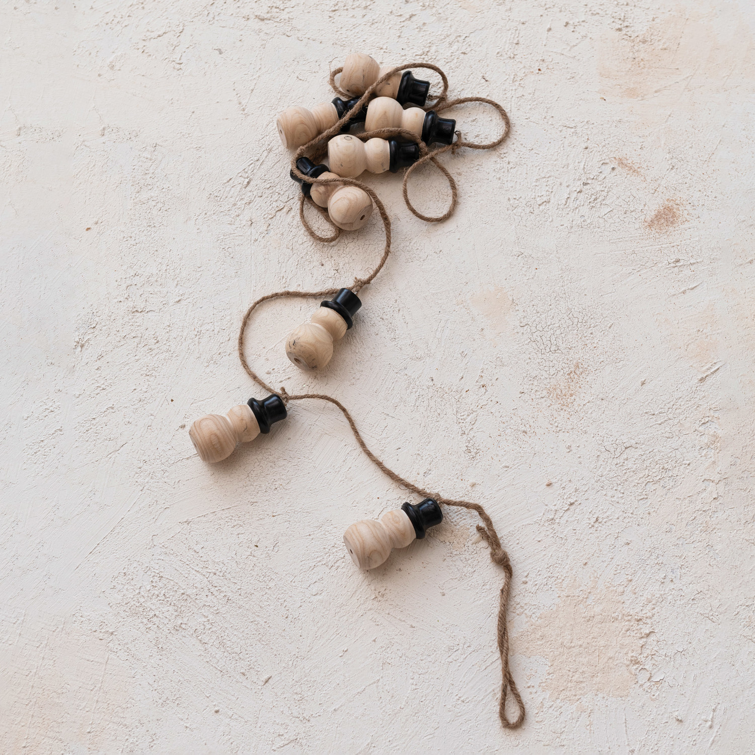 Catalog Name: 72"L x 4-1/4"H Wood Snowman Garland w/ Jute Rope, Natural & Black