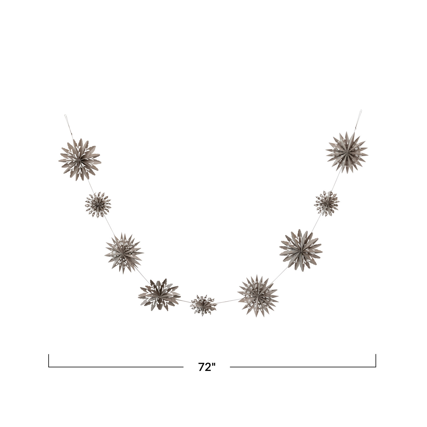 Catalog Name: 72"L x 6"H Recycled Paper Folding Snowflake Garland in Kraft Box, Grey