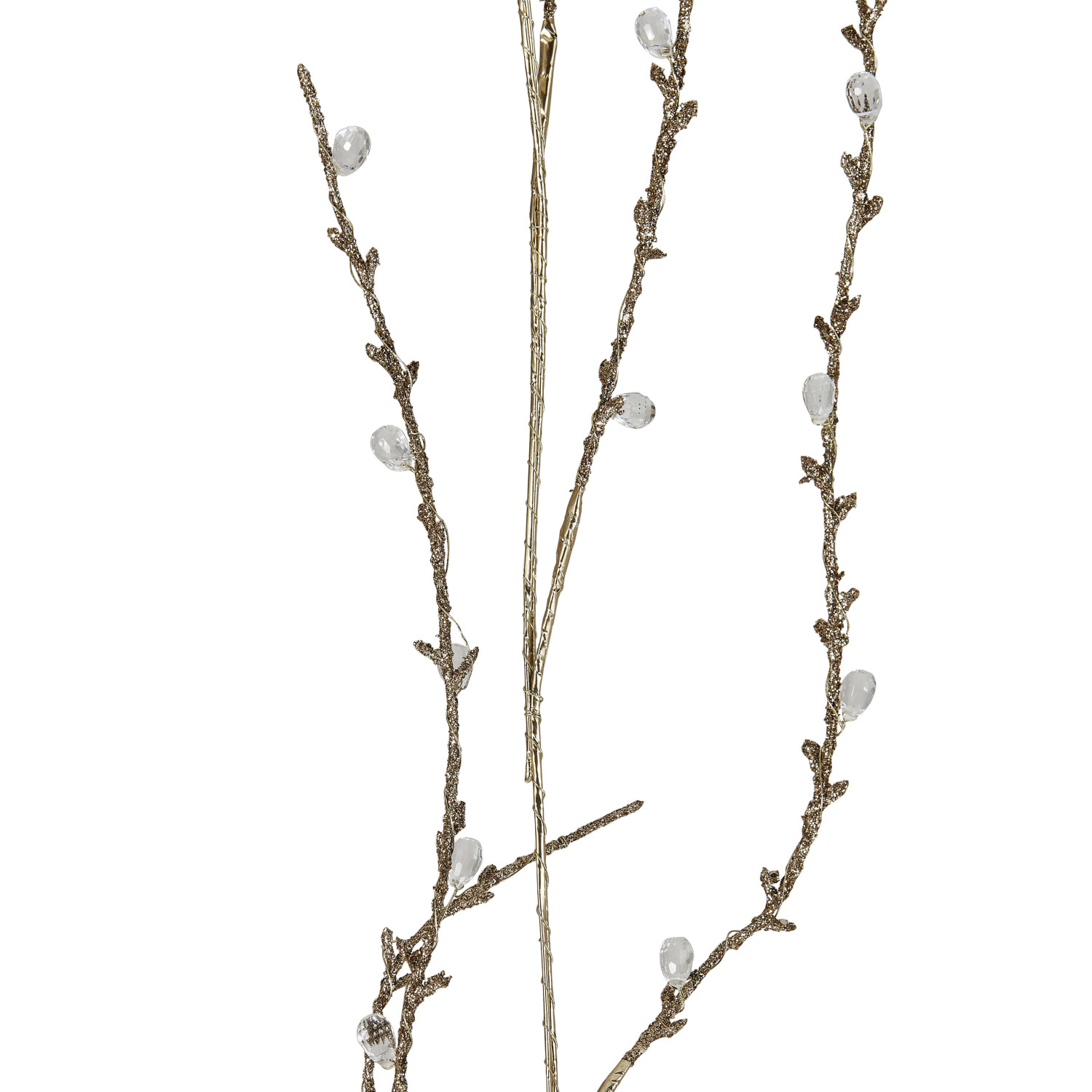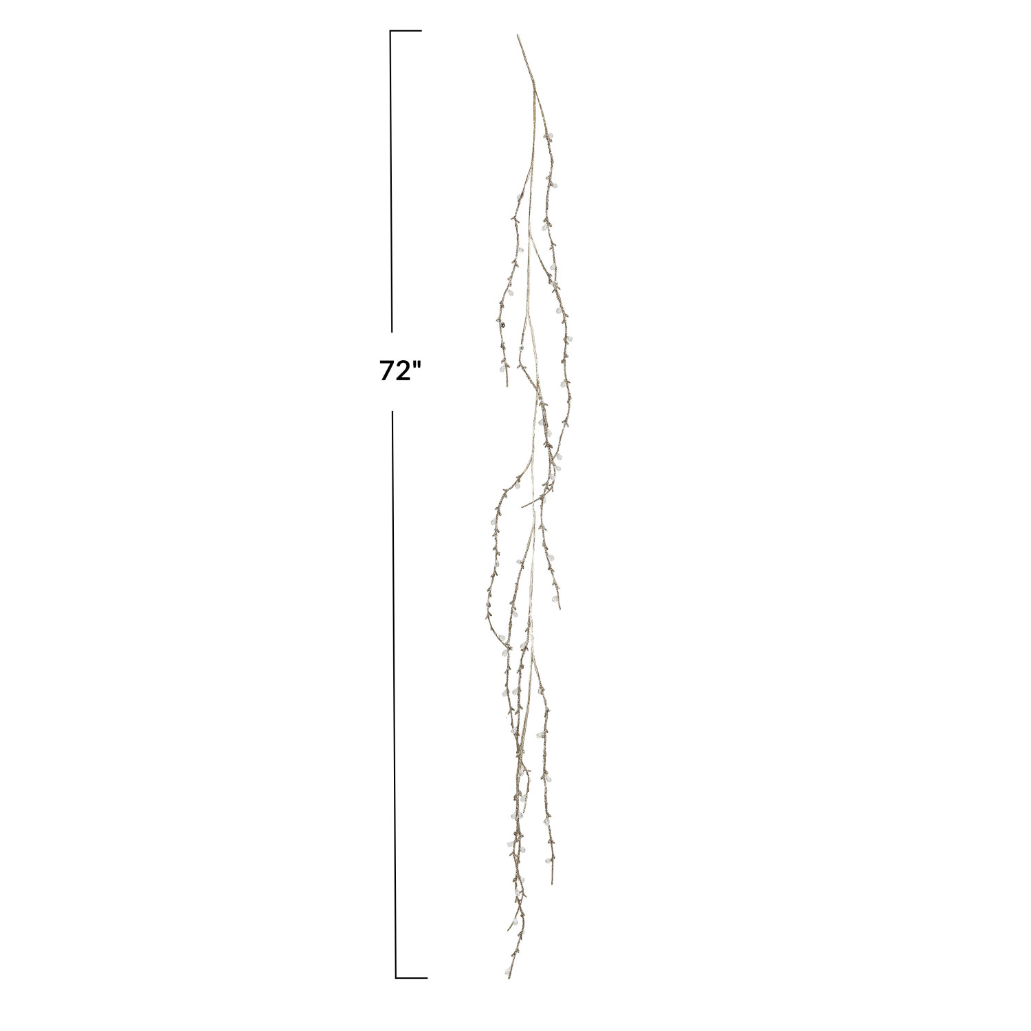 This dazzling 72-inch-long faux twig garland with jewels adds a touch of festive cheer and elegance to every holiday décor or special occasion. Natural-looking faux twigs create a rustic base, adorned with sparkling acrylic jewels and shimmering gold glitter for a touch of glamour and whimsy. The metal wire core, wrapped in plastic for a smooth finish, allows for easy draping and shaping of the garland to fit any desired look. Measuring 72 inches in length, it's perfect for creating cascading or draped arrangements that add a touch of dazzling charm to Christmas trees, mantels, railings, or anywhere to spread holiday cheer. A dazzling 72-inch long garland featuring a base of realistic faux twigs adorned with sparkling acrylic jewels and shimmering gold glitter for a touch of glamorous whimsy. Adds a touch of festive cheer and a touch of elegance to any holiday décor or special occasions. Ideal for draping over Christmas trees, mantels, railings, or anywhere a touch of dazzling charm is desired.