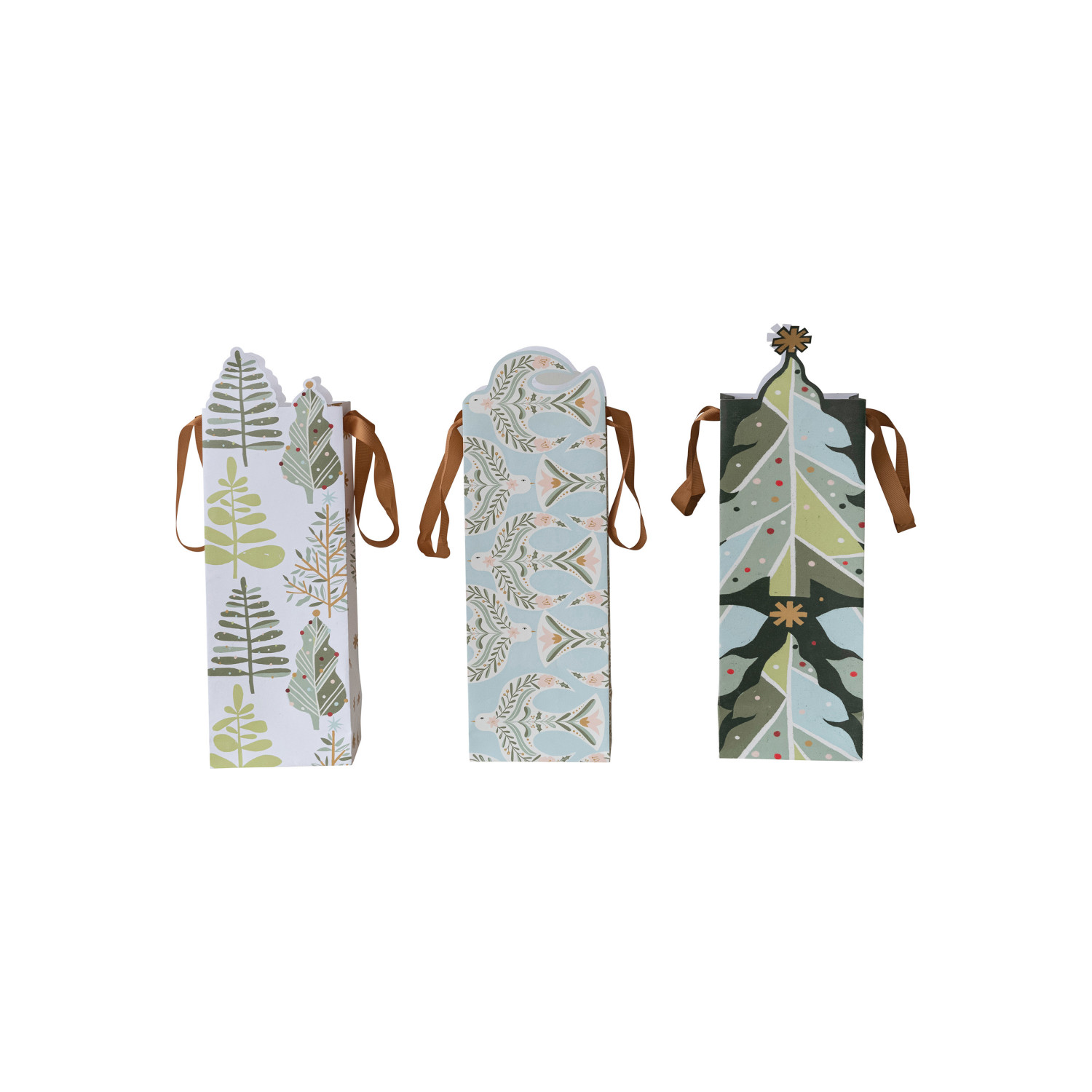 Catalog Name: 5-1/2"L x 4"W x 16"H Printed Recycled Paper Diecut Gift Bag w/ Tree/Dove Pattern, Multi Color, 3 Styles ©