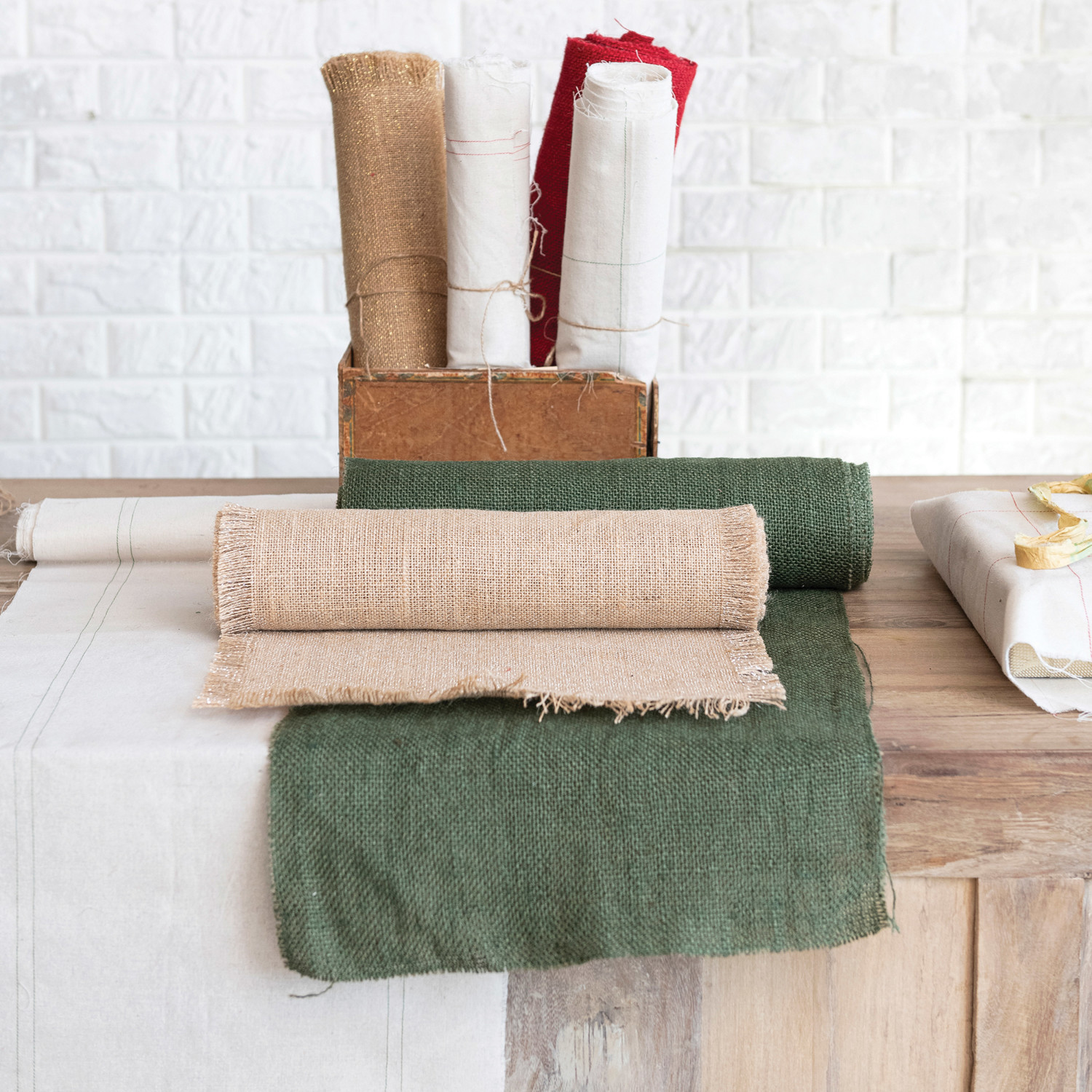 6 Yard Woven Torn Cotton Blend Fabric Roll, Natural & Green, 2 Styles