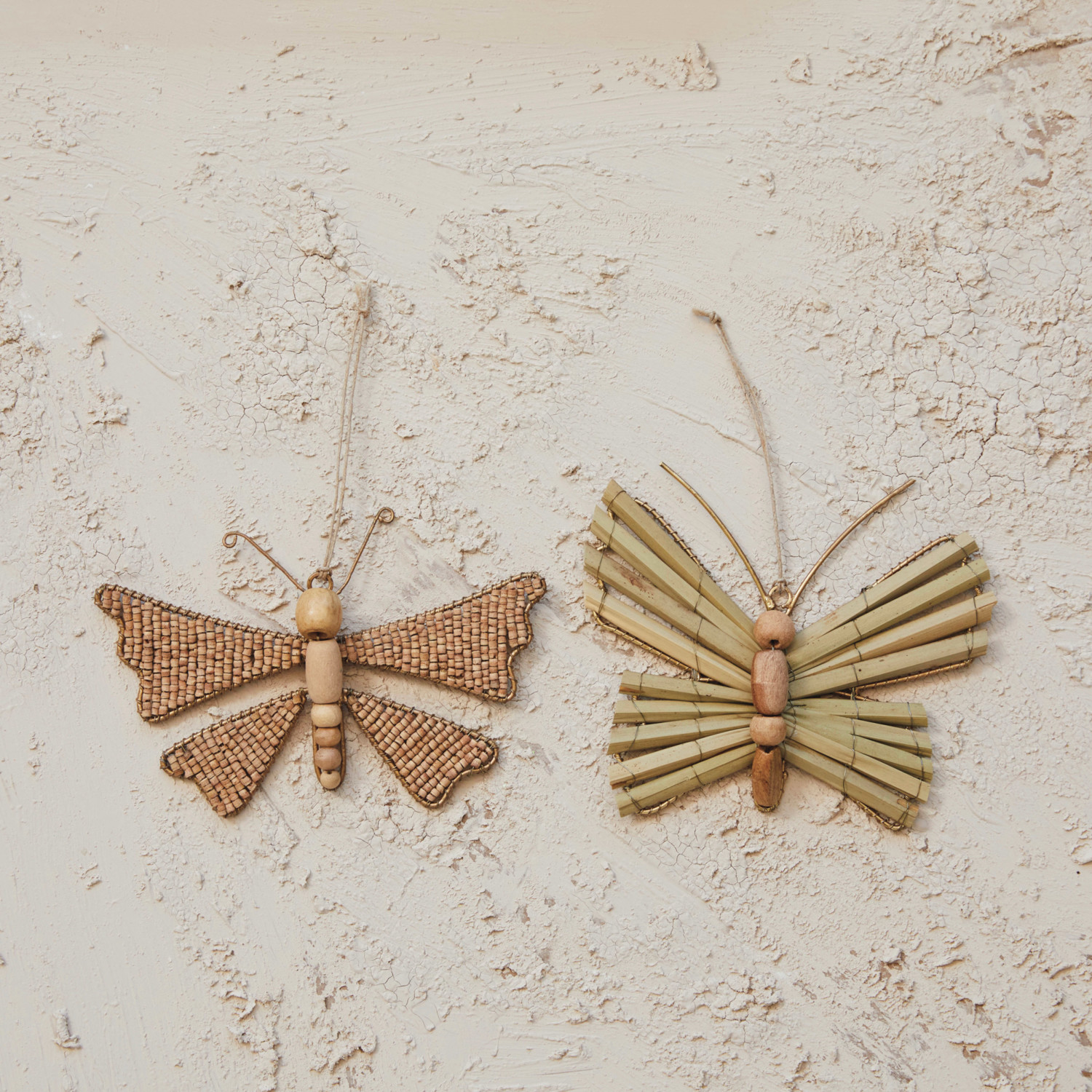 Handmade Mango Wood Bead & Bamboo Butterfly Ornament, 2 Styles