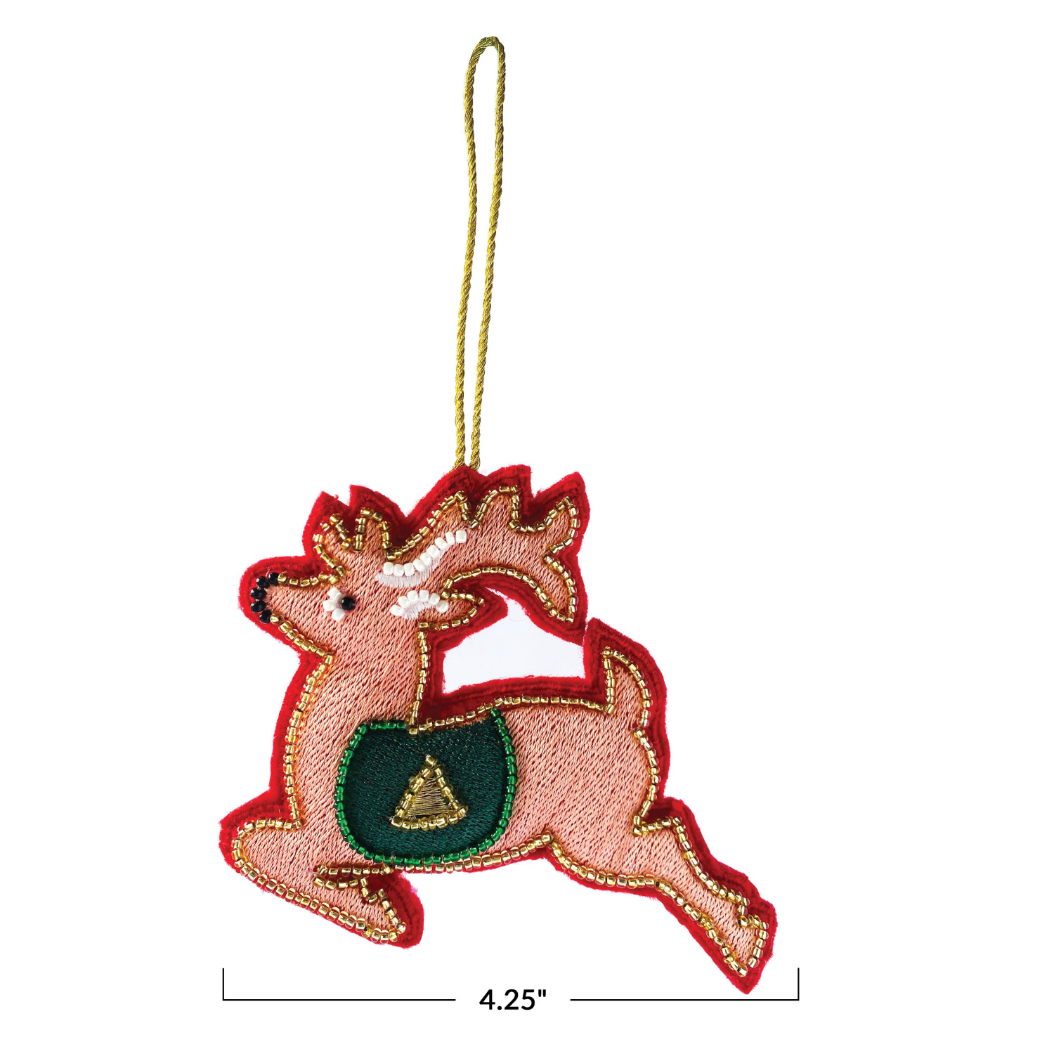 Catalog Name: 4-1/4"L Fabric Reindeer Ornament w/ Glass Beads & Embroidery, Multi Color
