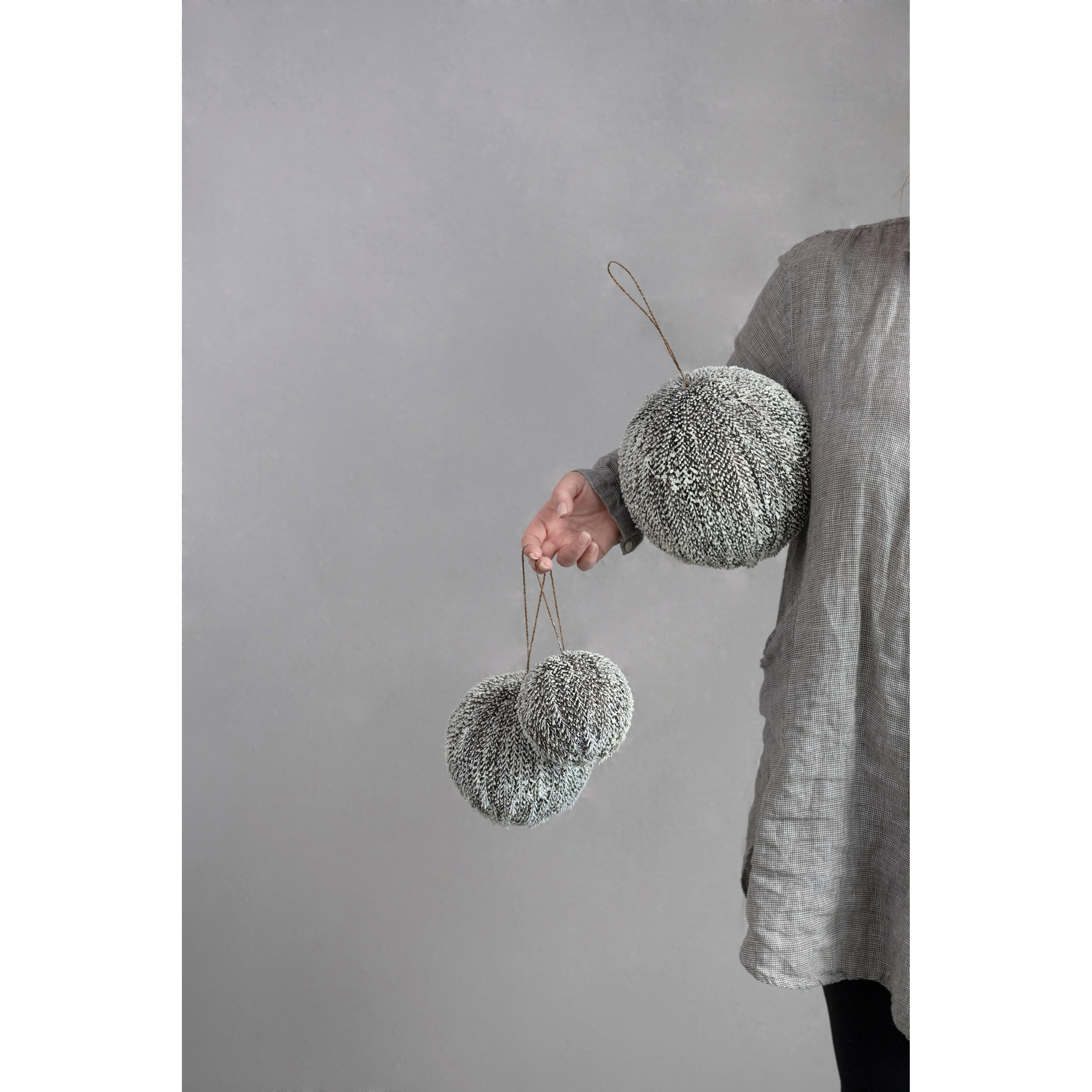 4" Round Textured Plastic Ball Ornament, Snow Finish, Brown