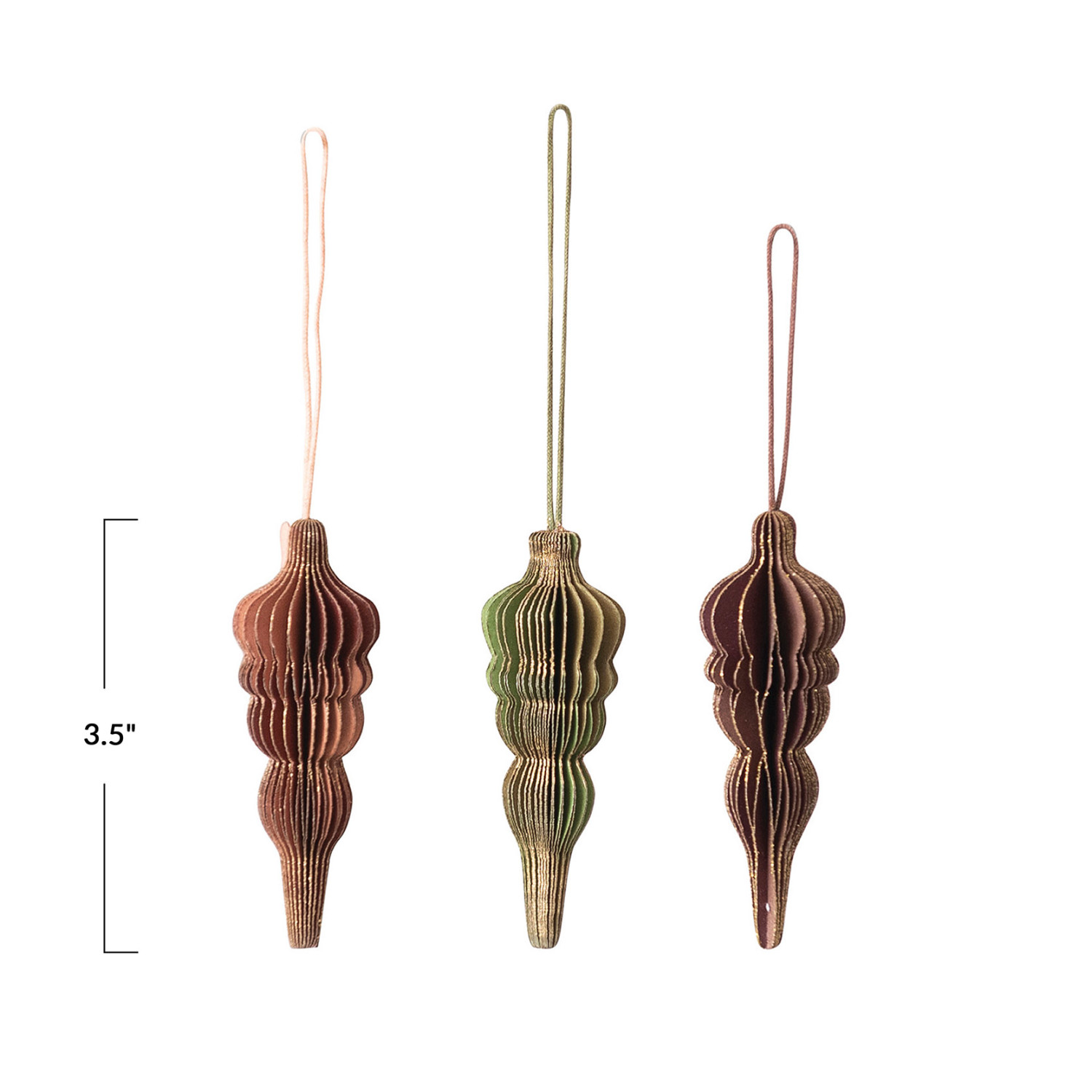Catalog Name: 3-1/2"H Handmade Recycled Paper Folding Honeycomb Finial Ornament w/ Gold Glitter, 3 Colors
