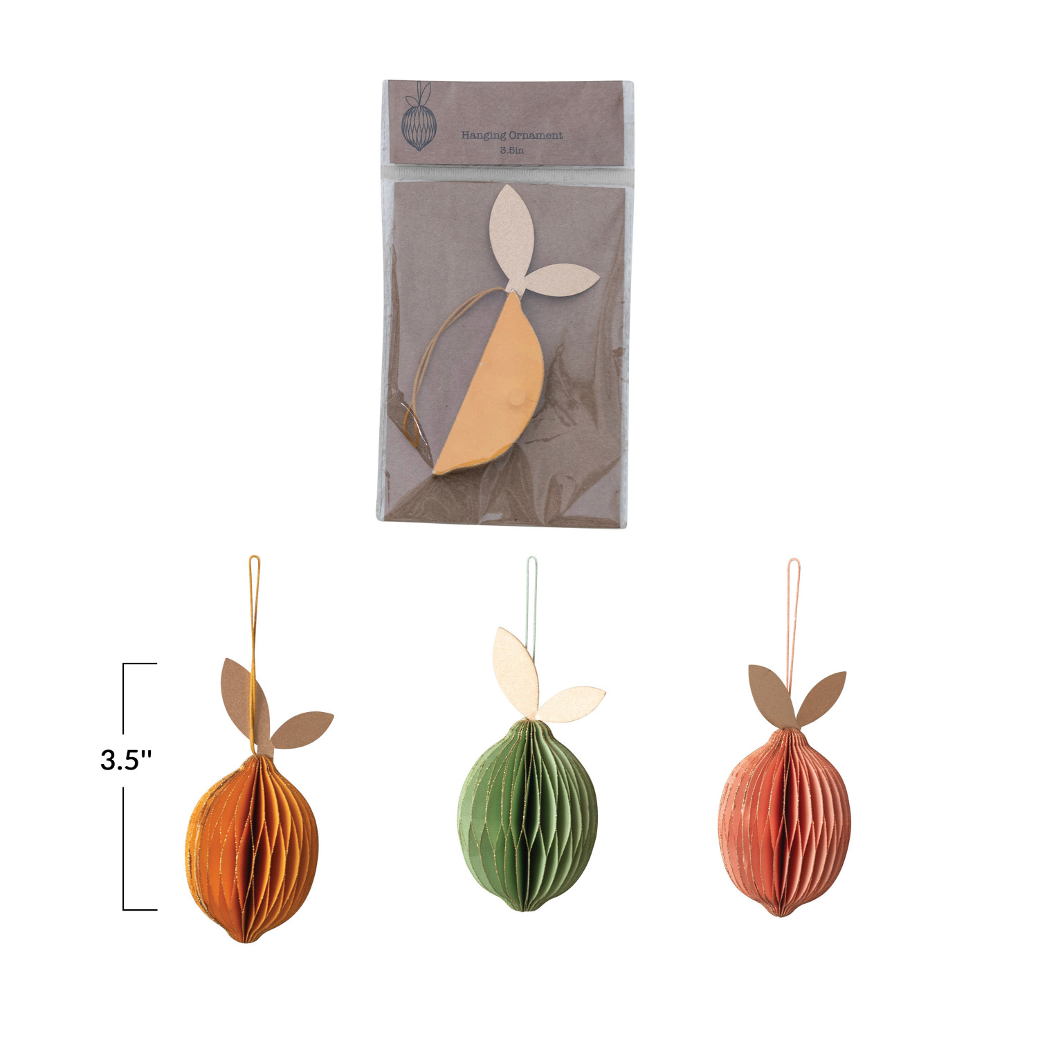 Catalog Name: 3-1/2"H Handmade Recycled Paper Folding Honeycomb Lemon Ornament w/ Glitter, 3 Colors