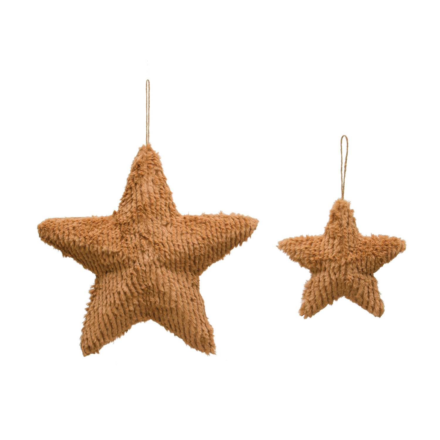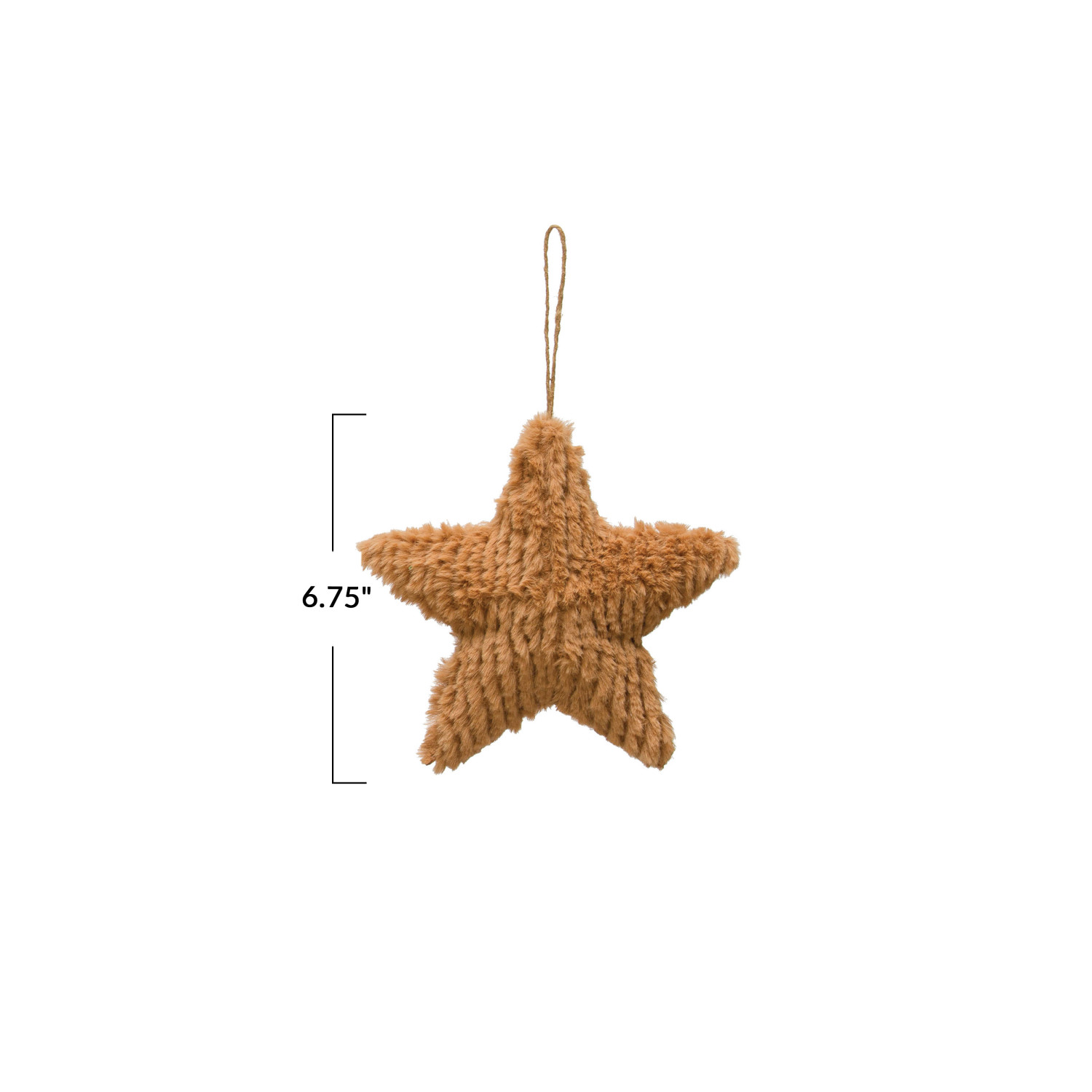 This cozy star ornament features plush fabric construction in a neutral hue. Ornaments can be showcased as decorations on a Christmas tree, wreath, or atop a festive centerpiece, hung from doorways, displayed on mantels, used to embellish cards and presents, or given as gifts.