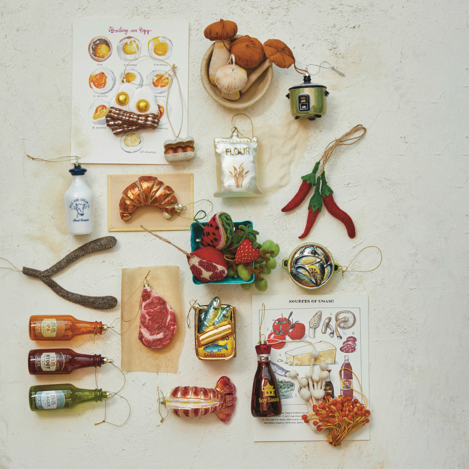 This ornament is a glass creation that epitomizes the beauty of a croissant, complete with a coppery glitter finish that catches the light and the eye. It measures 3.0 inches long, 2.0 inches wide, and 4.5 inches high, making it a substantial piece that will draw attention and admiration. The string attachment facilitates easy placement, allowing this charming piece to become a highlight of the holiday decorations or a year-round tribute to the artistry of baking. This is a perfect choice for anyone who loves whimsical and adorable holiday decor. A glass croissant ornament, shimmering with glitter and a lustrous copper finish, capturing the charm of a freshly baked French pastry. An ornament that exudes elegance, perfect for adding a touch of sophistication to any holiday decor ensemble. Perfect for those who appreciate the art of baking, this piece can elegantly grace a Christmas tree or a kitchen-themed display.
