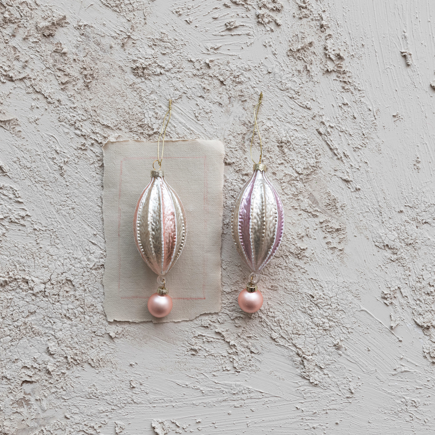 Glass Pleated Finial Ornament w/ Ball, 2 Colors