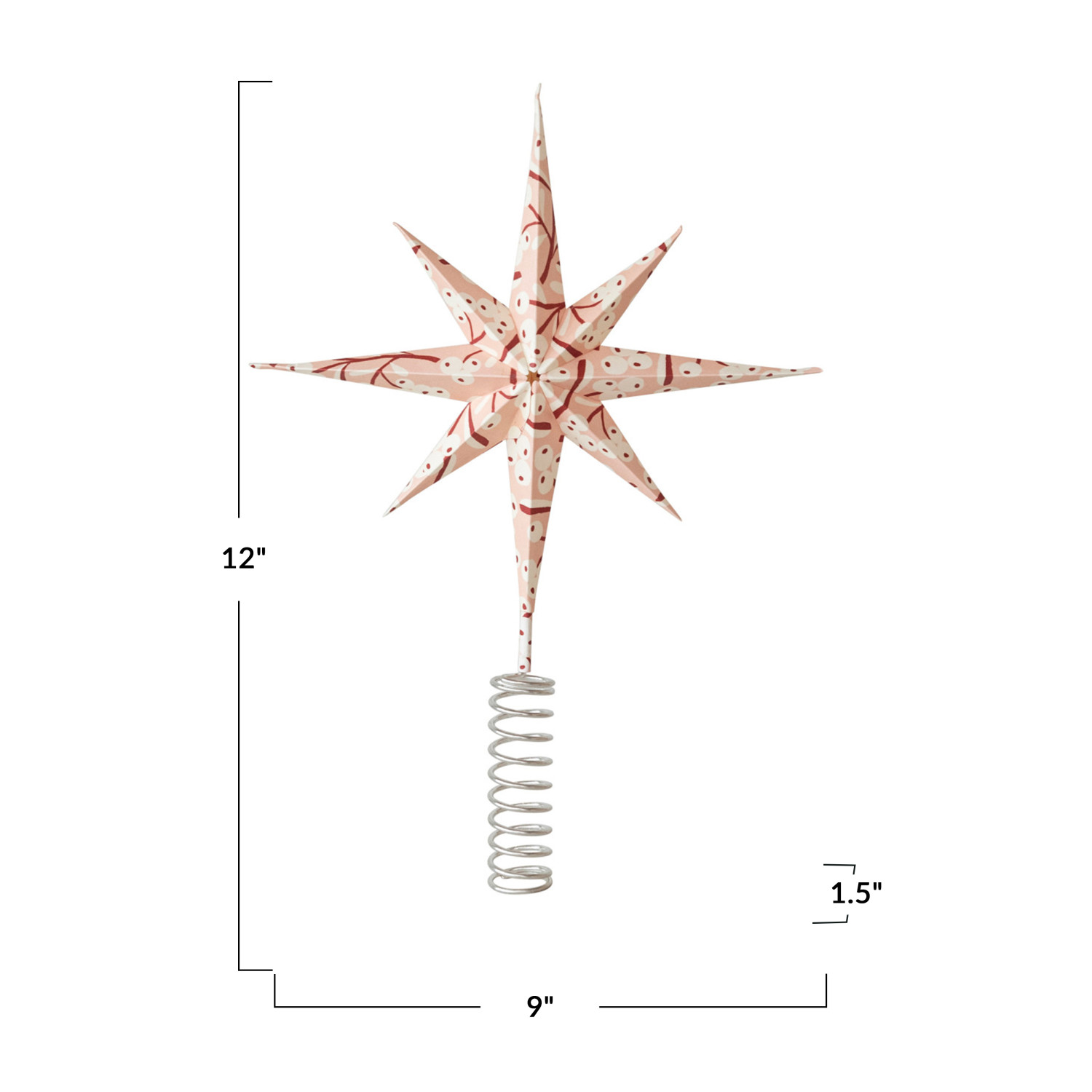 Catalog Name: 9"L x 1-1/2"W x 12"H Recycled Paper & Metal Star Tree Topper w/ Berry Pattern in Kraft Box, Pink, Red & White ©