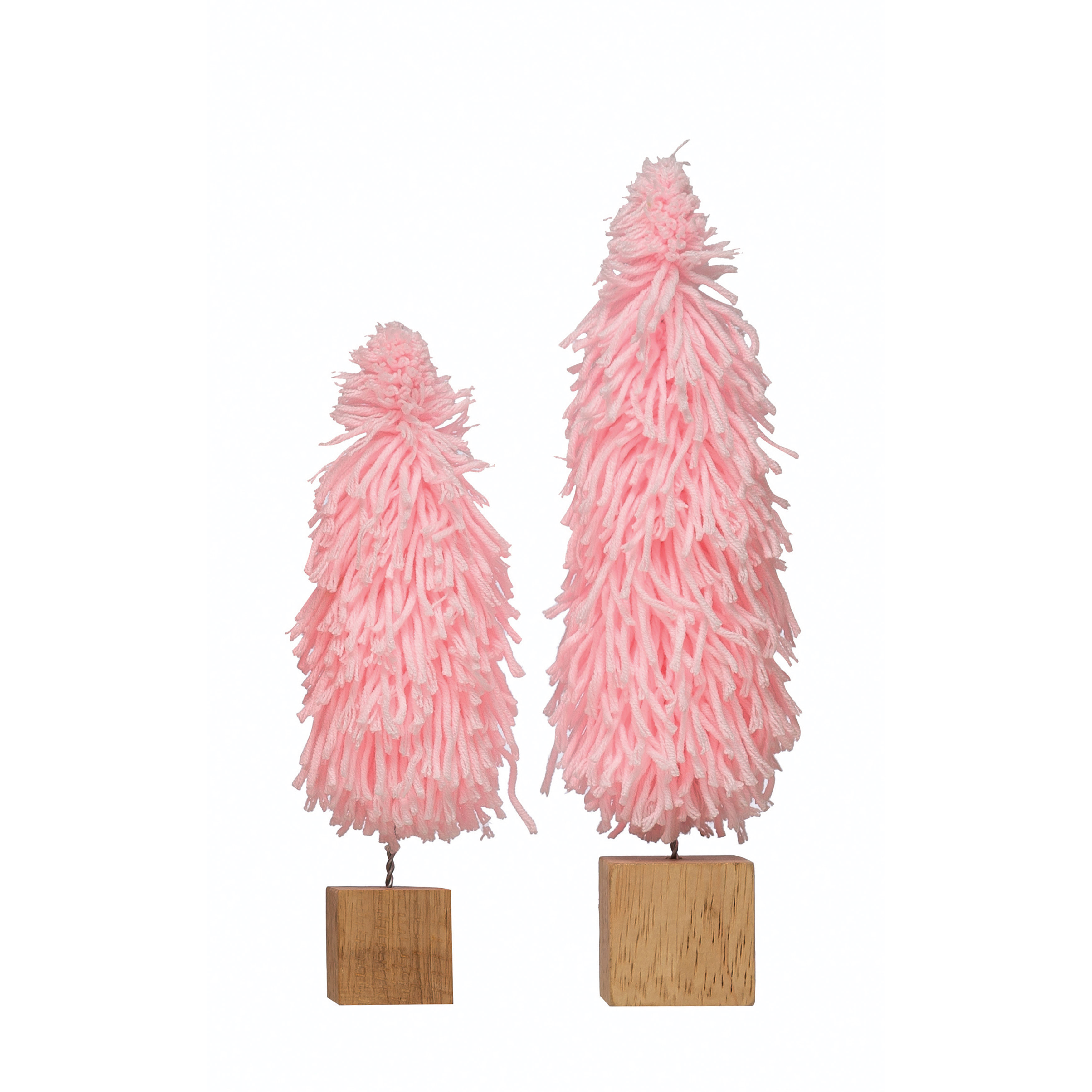 Catalog Name: 2-3/4" Round x 9-1/2"H Fabric Yarn Tree with Wood Block Base, Pink