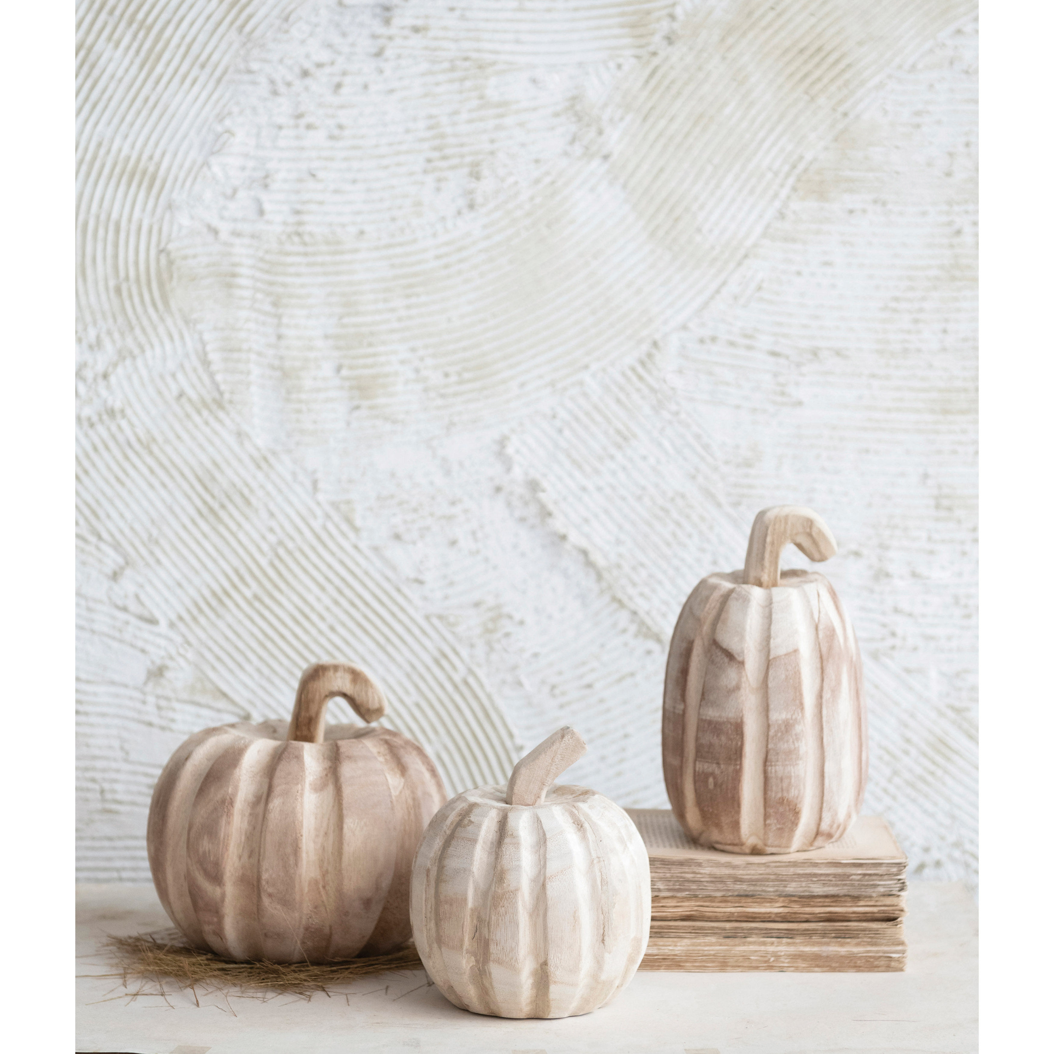 Catalog Name: 5" Round x 5"H Hand-Carved Paulownia Wood Pumpkin, Natural (Each One Will Vary)
