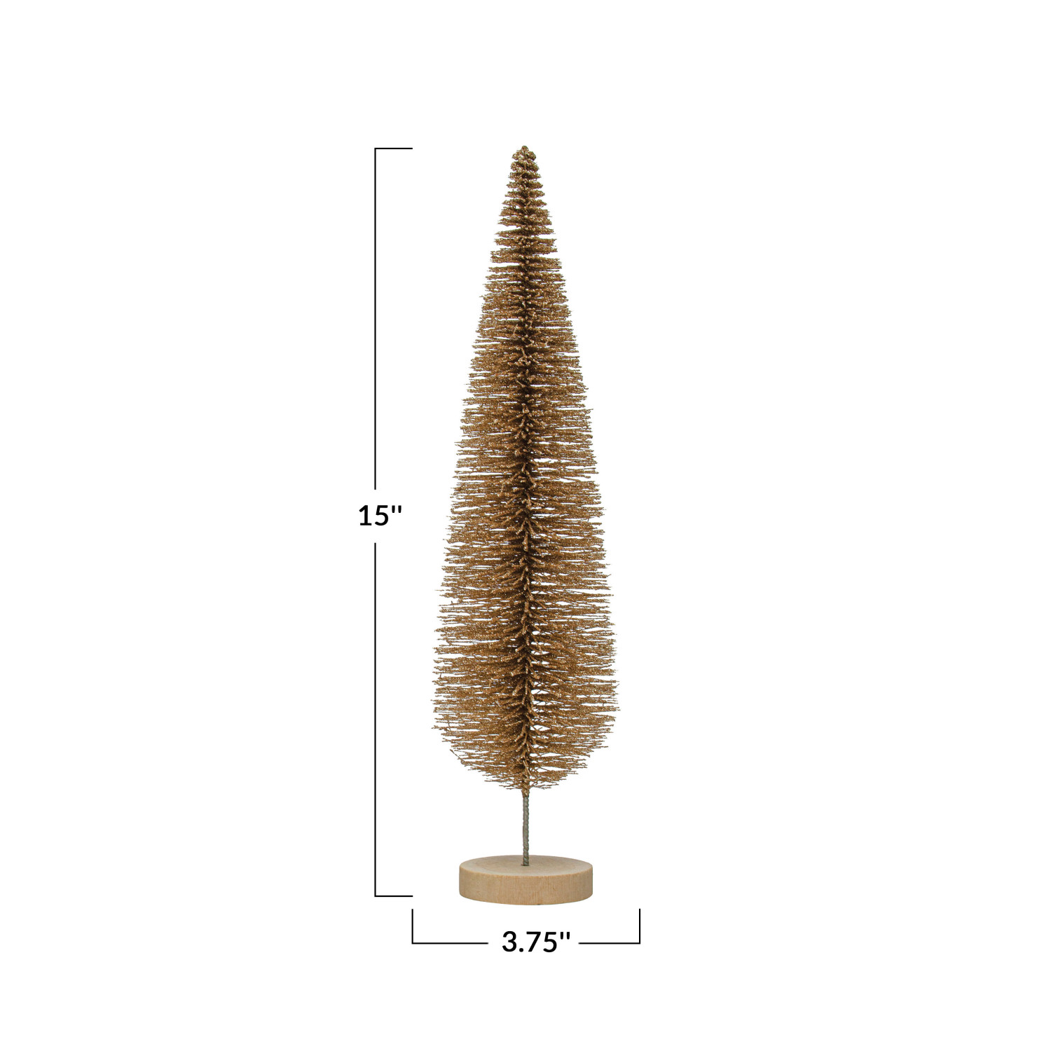 Catalog Name: 3-3/4" Round x 15"H Plastic Bottle Brush Tree w/ Glitter & Wood Base, Gold Color