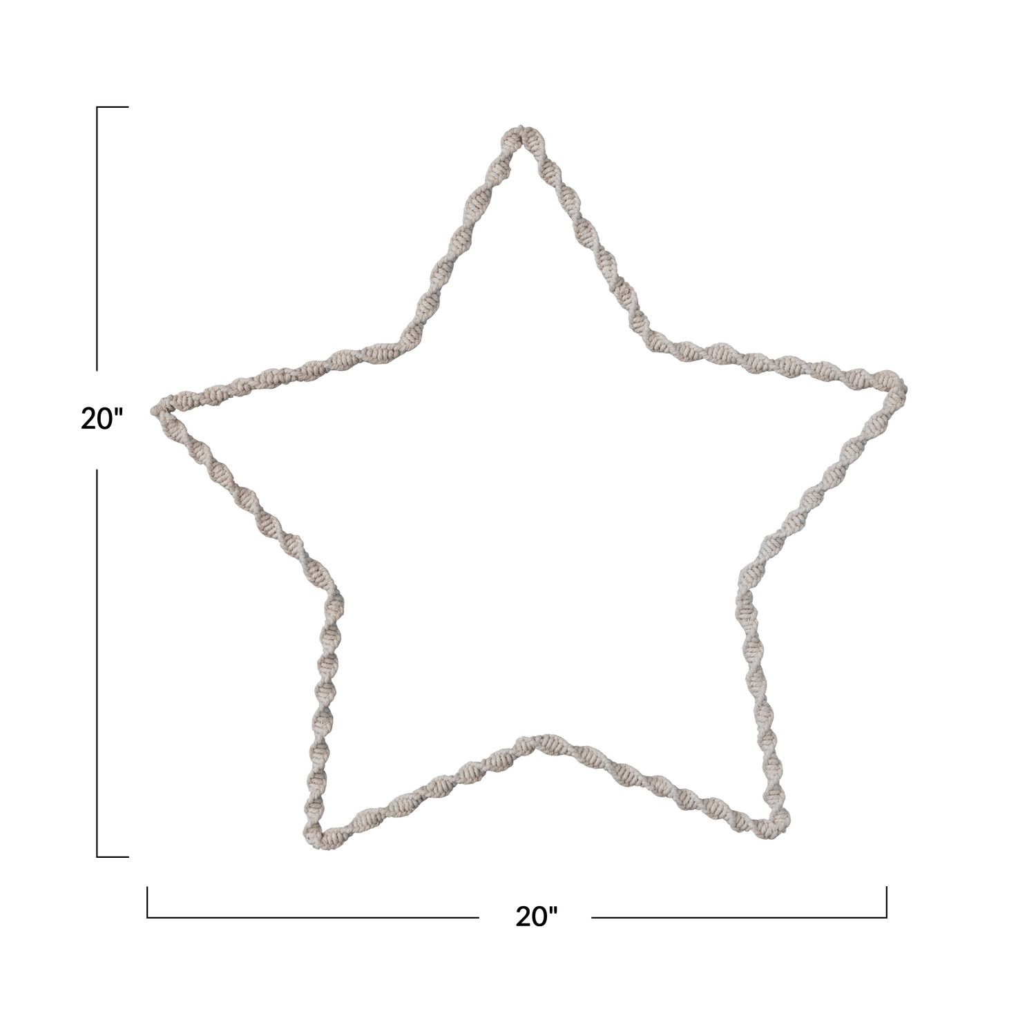 20"W x 20"H Cotton Macrame Wrapped Metal Star, Natural