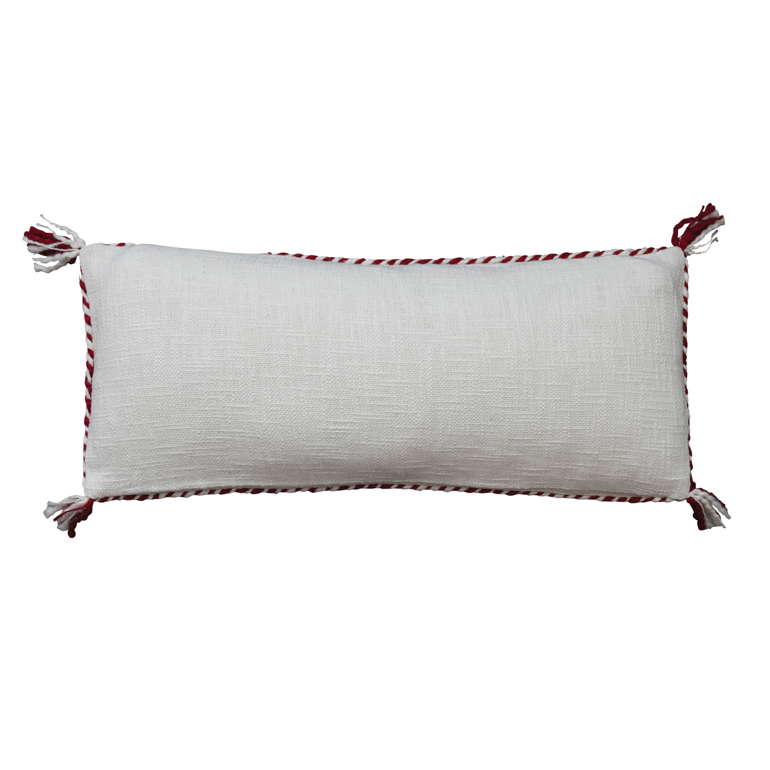 Catalog Name: 24"L x 10"H Cotton Lumbar Pillow w/ Holly, Snowflake, Embroidery, Candy Cane Piping & Tassels "Joy", Multi Color