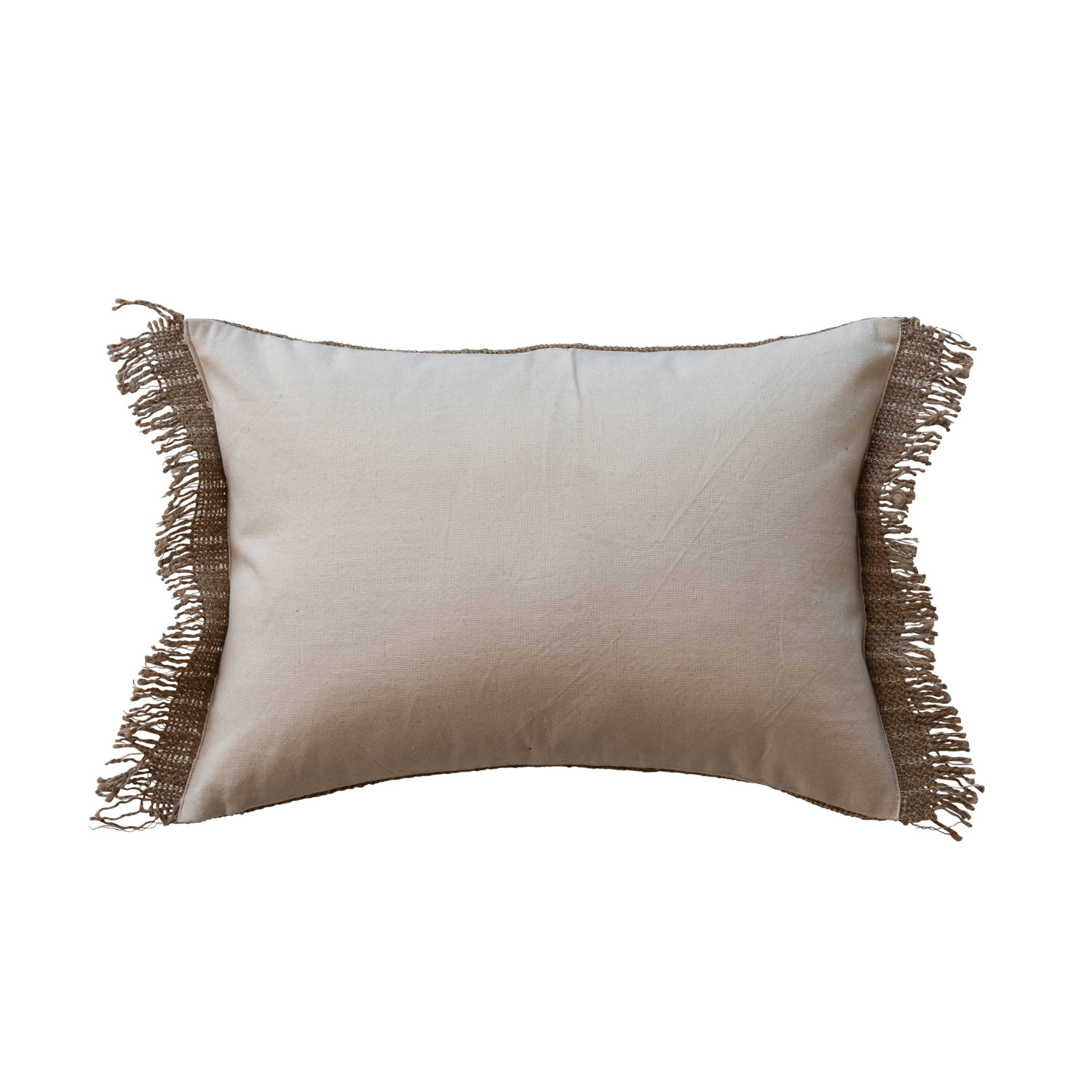 Catalog Name: 20"L x 14"H Woven Jute Lumbar Pillow w/ Metallic Gold Thread, Cotton Back & Fringe, Natural