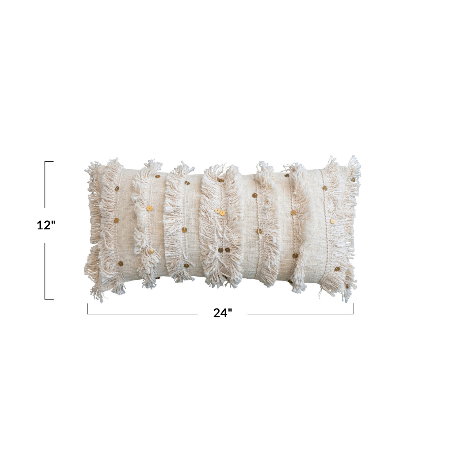 Catalog Name: 24"L x 12"H Hand-Embroidered Woven Cotton Slub Lumbar Pillow w/ Vintage Reproduction Moroccan Wedding Blanket Embellishments, Cream Color