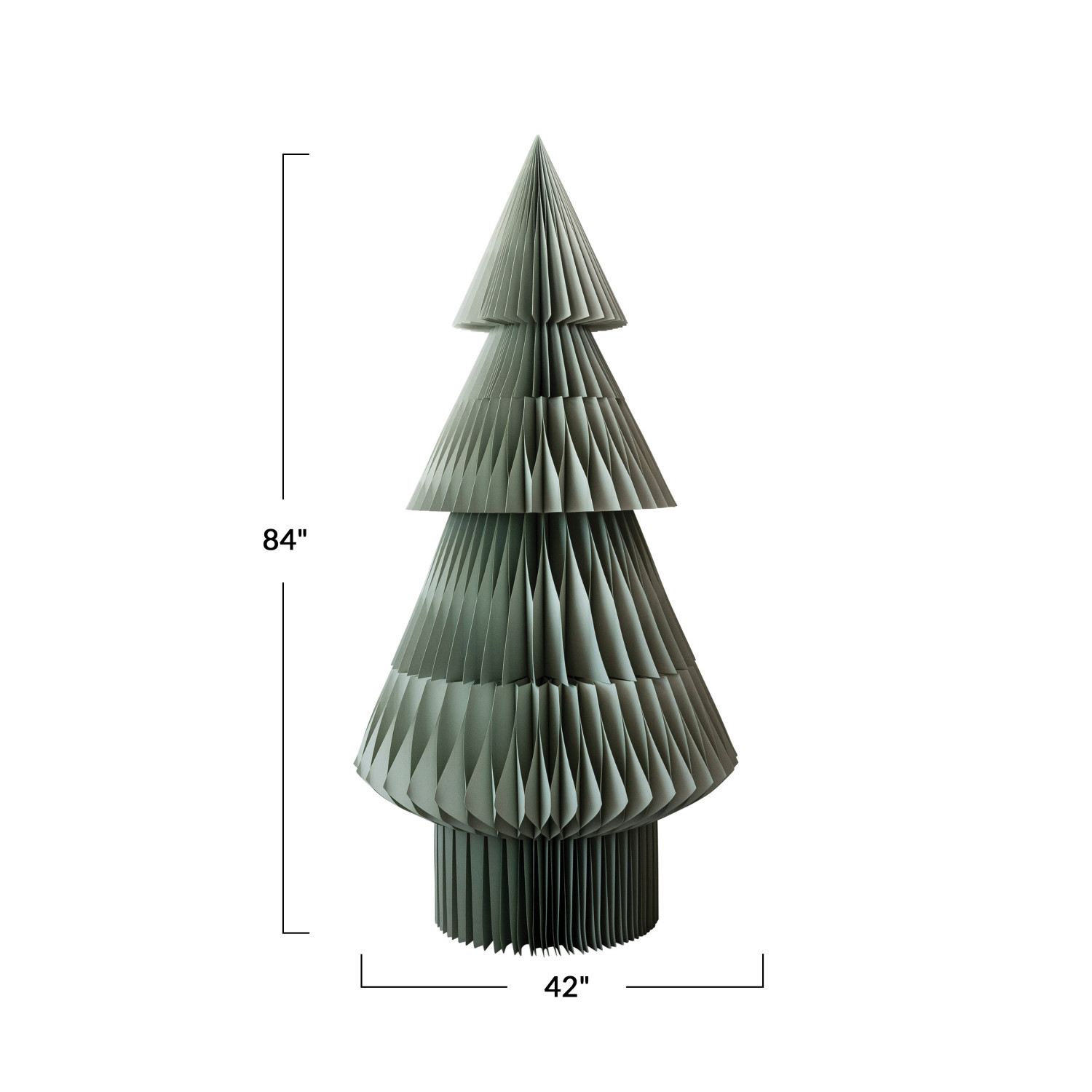 This sage green paper honeycomb tree is a beautiful and unique way to decorate for the holidays. It features a simple design that unfolds into a round shape with a pointed top, creating a three-dimensional effect. The tree has a rich and elegant sage green color that matches well with any festive theme, whether it is natural, rustic, or modern. The tree is ideal for placing on a table, mantel, shelf, or window sill, where it can add a touch of charm and warmth to the space. The tree is also easy to fold and store, making it a convenient and reusable option. The tree is made of high-quality paper that is durable. It measures 42 inches in diameter and 84 inches in height, making it a noticeable and impressive centerpiece. This paper honeycomb tree is a wonderful choice for anyone who loves simple and elegant holiday decor. Elevate the holiday decor with this eye-catching Christmas tree, adding both style and a touch of whimsy. A stunning paper honeycomb tree in sage that unfolds into a round shape with a pointed top. A perfect addition to any festive decor, this sage green tree complements natural, rustic, or modern themes. Ideal for displaying on a table, mantel, shelf, or window sill, this tree can be easily folded and stored for next year.