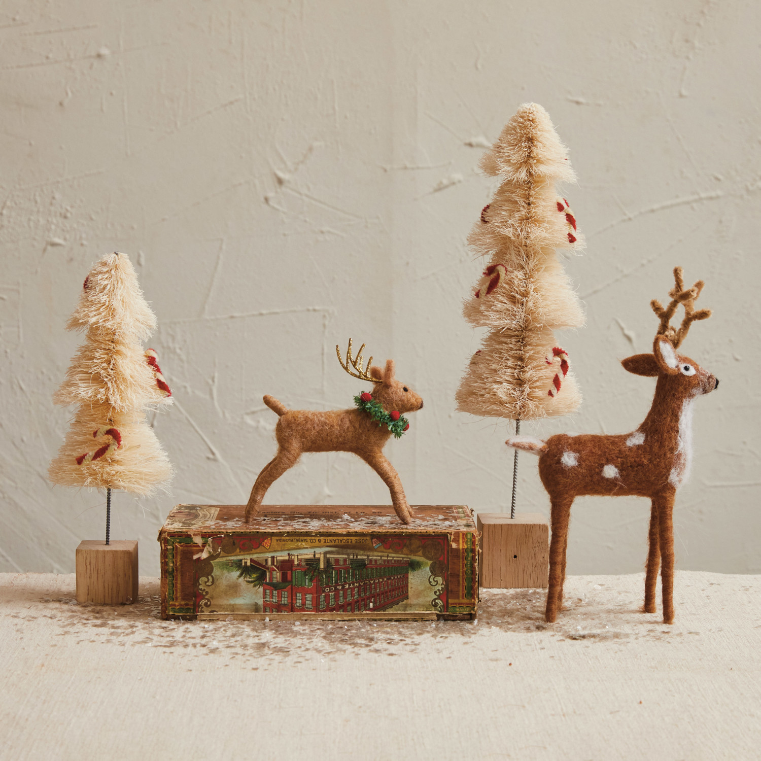 This tall sisal bottle brush tree with chenille candy cane and wood base is a lovely ornament that will bring some sweetness and charm to the home. It features a natural sisal bottle brush tree that is made of natural plant fibers and has a soft and fluffy appearance. The tree is decorated with a chenille candy cane that adds some texture and fun. The tree stands on a wood base that is painted in white and red colors, creating a contrast and a festive effect. It measures 4 inches in diameter and 14.5 inches in height. The ornament is made of durable and eco-friendly materials that will last for years. For a rustic, modern, or whimsical atmosphere, this ornament will fit right in and enhance the decor. A tall and festive ornament that features a natural sisal bottle brush tree with a chenille candy cane and a wood base in white and red colors. A cozy and charming accessory that can complement any style of decor, from rustic to modern to whimsical. Ideal for displaying on the tabletop, mantel, shelf, or anywhere to add some holiday cheer.