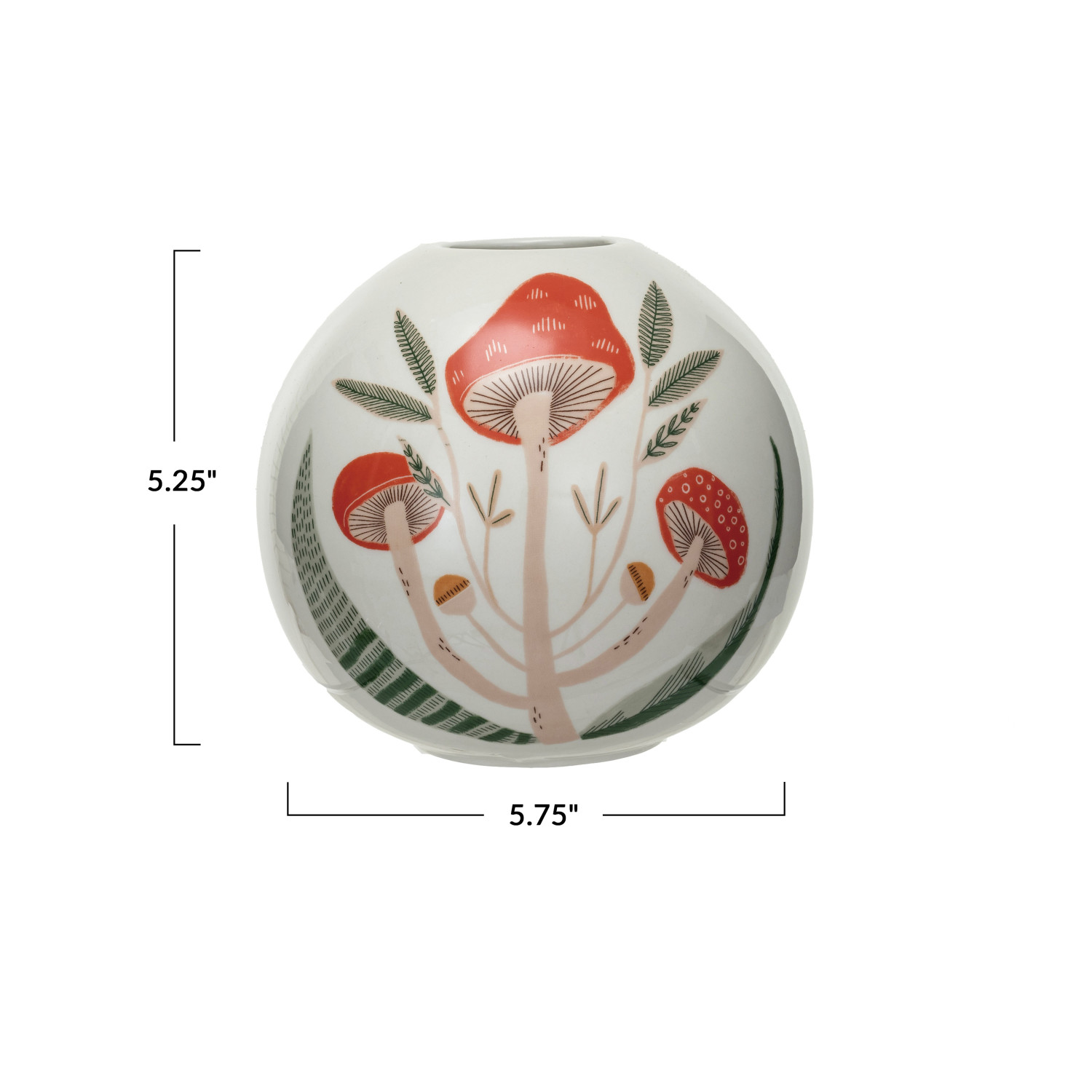 Catalog Name: 5-3/4" Round x 5-1/4"H Stoneware Vase w/ Mushrooms, Multi Color ©
