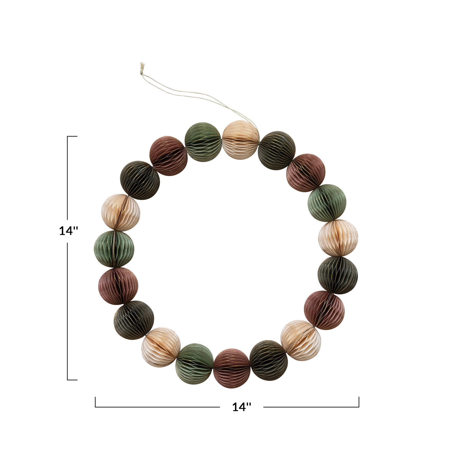 Catalog Name: 14" Round Handmade Recycled Paper Honeycomb Ball Wreath, Multi Color