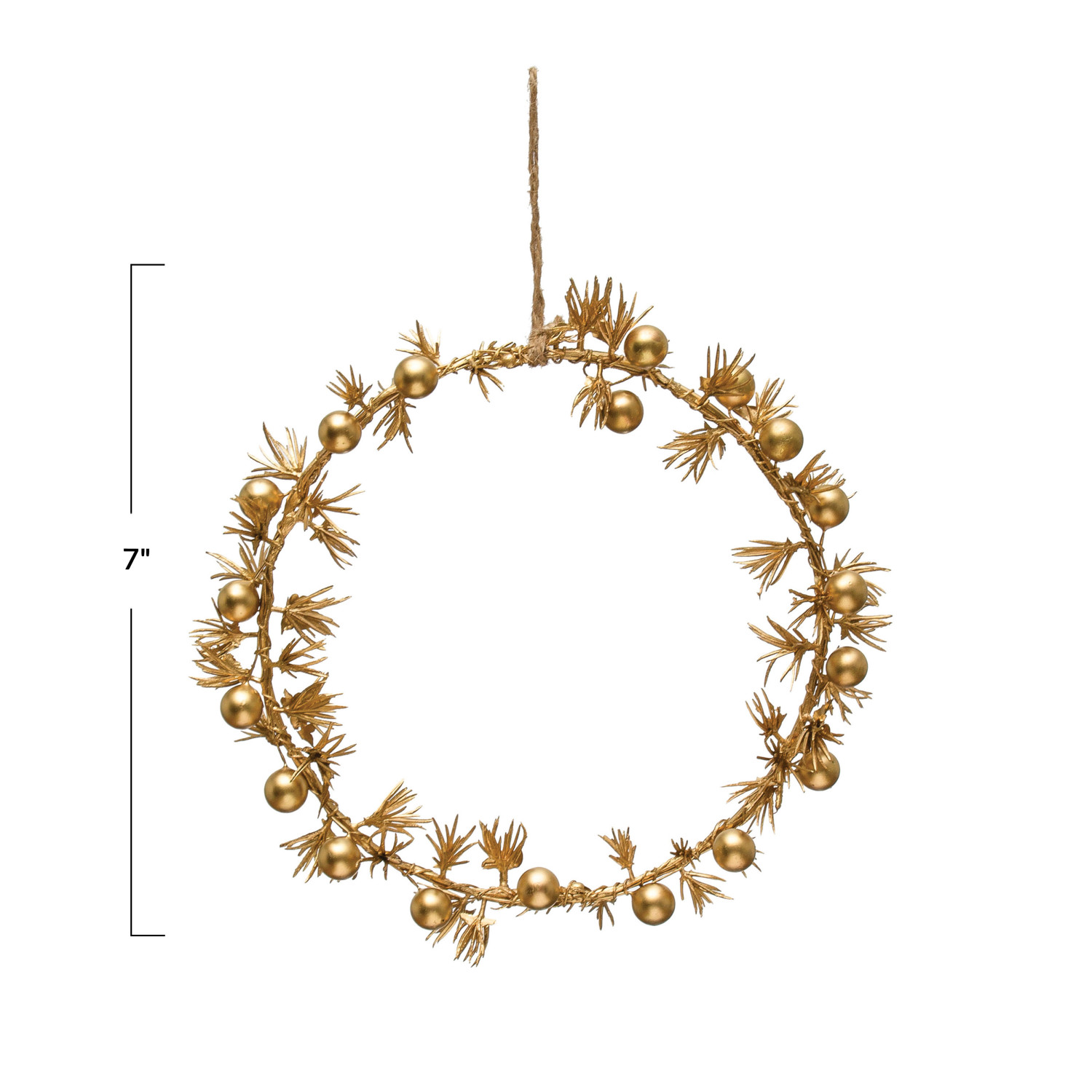 Catalog Name: 7" Round Faux Pine & Berries Wreath, Gold Finish