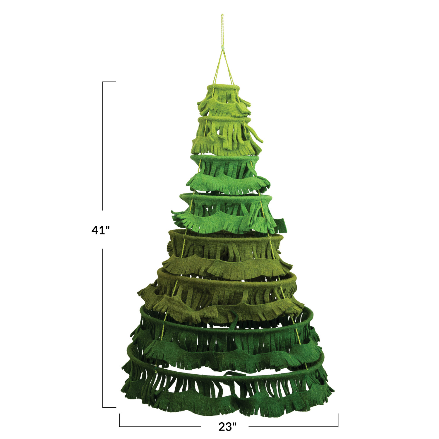 Catalog Name: 23" Round x 41"H Handmade Felt Hanging Collapsible Ring Tree, Green Ombre