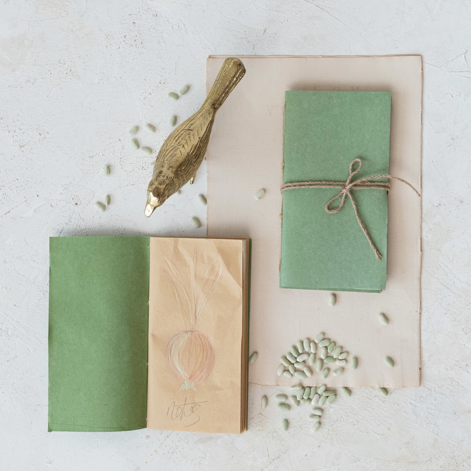 Catalog Name: 4-1/4"L x 8-1/4"W Paper Soft Cover Notebooks, Green, Set of 3