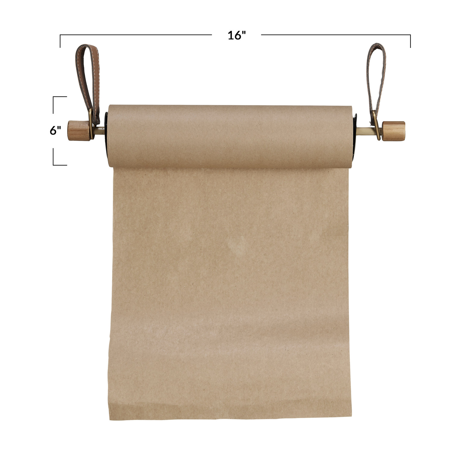 Catalog Name: 16-1/2"L x 3"W x 6-1/4"H Wood Wall Mounted Paper Dispenser w/ Leather Straps & 80' Paper Roll, Set of 3