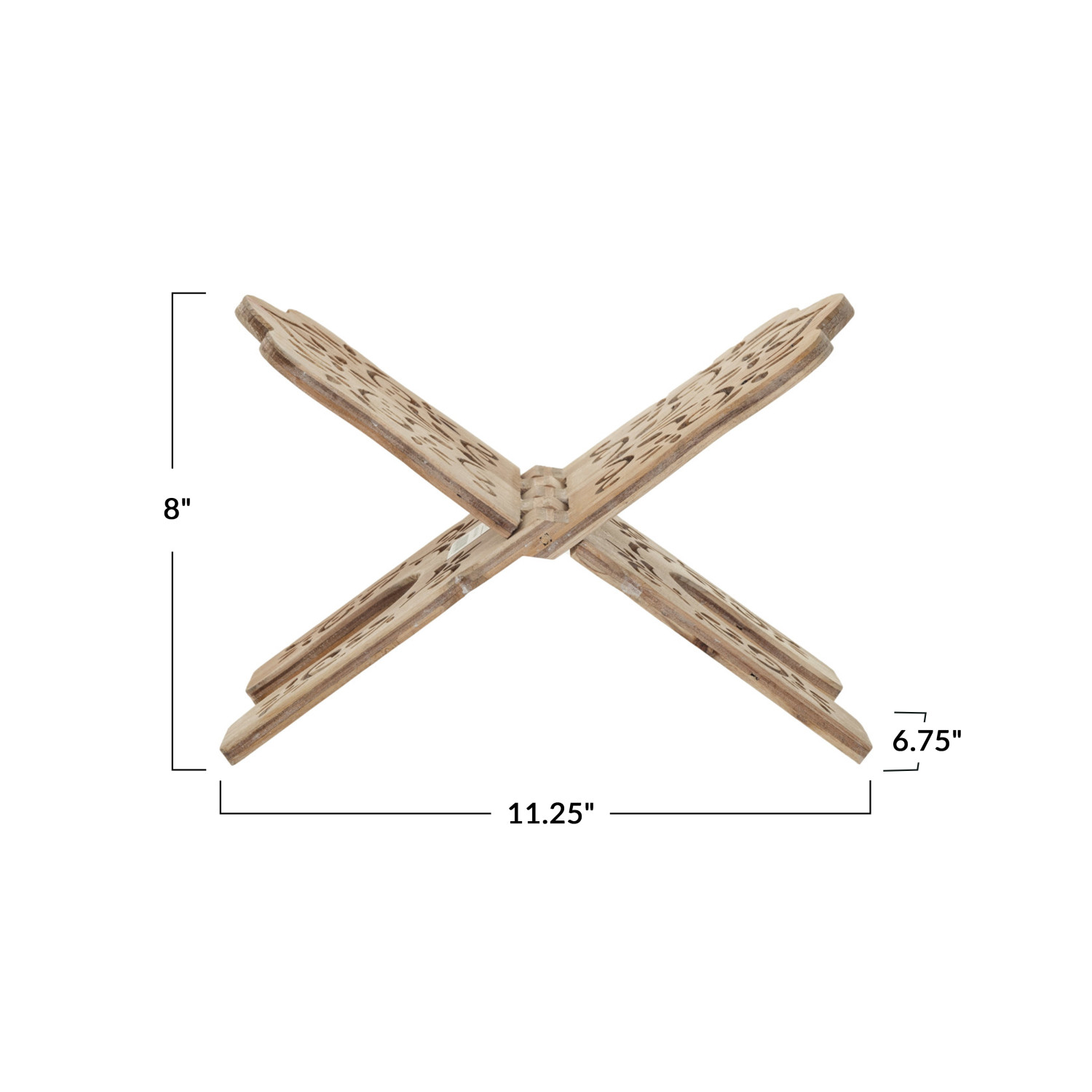 Catalog Name: 11-1/4"L x 6-3/4"W x 8"H Laser Cut Wood Folding Book Holder, Natural