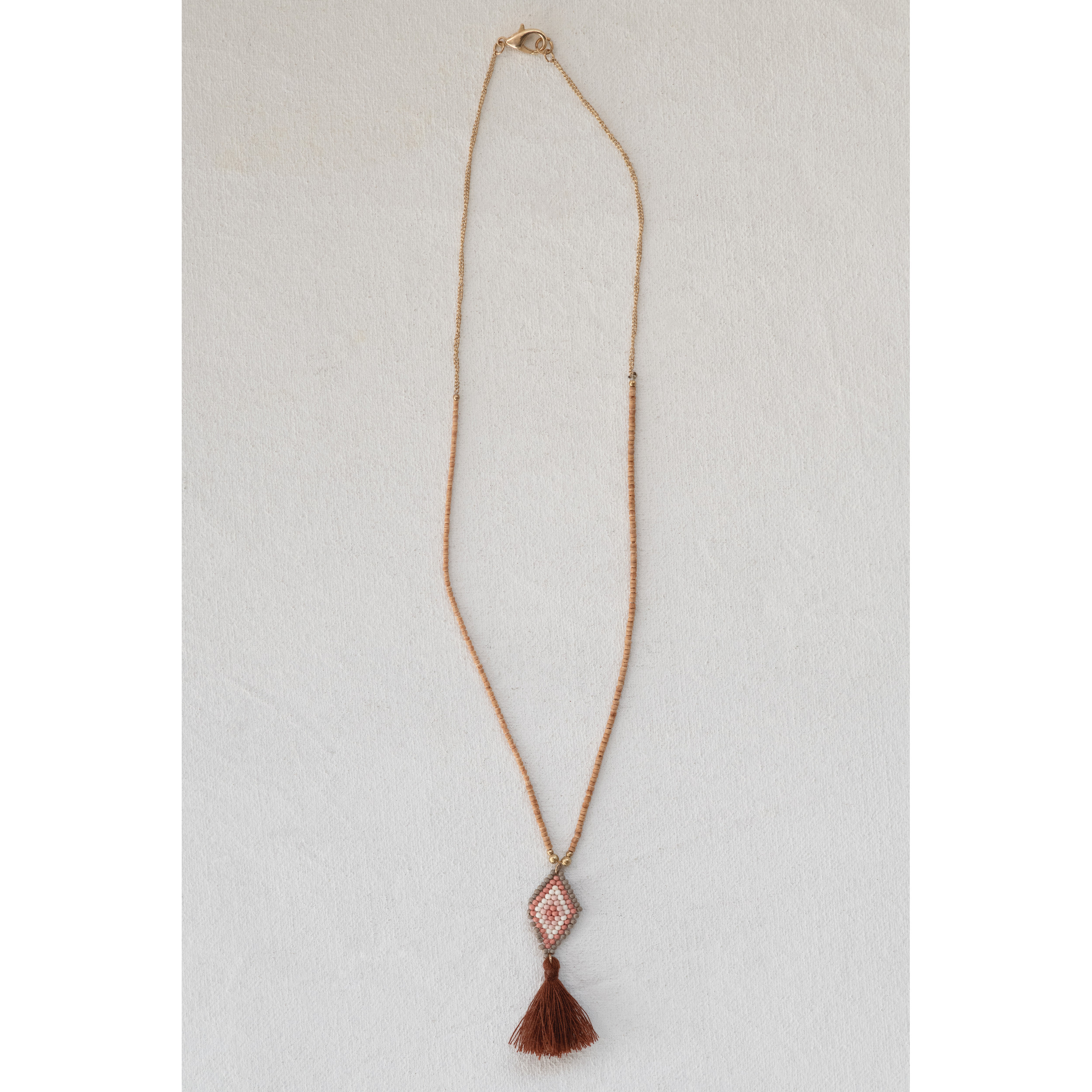 Catalog Name: 11-3/4"L Wood, Glass & Metal Bead Jean Necklace w/ Beaded Tassel & 3" Extender