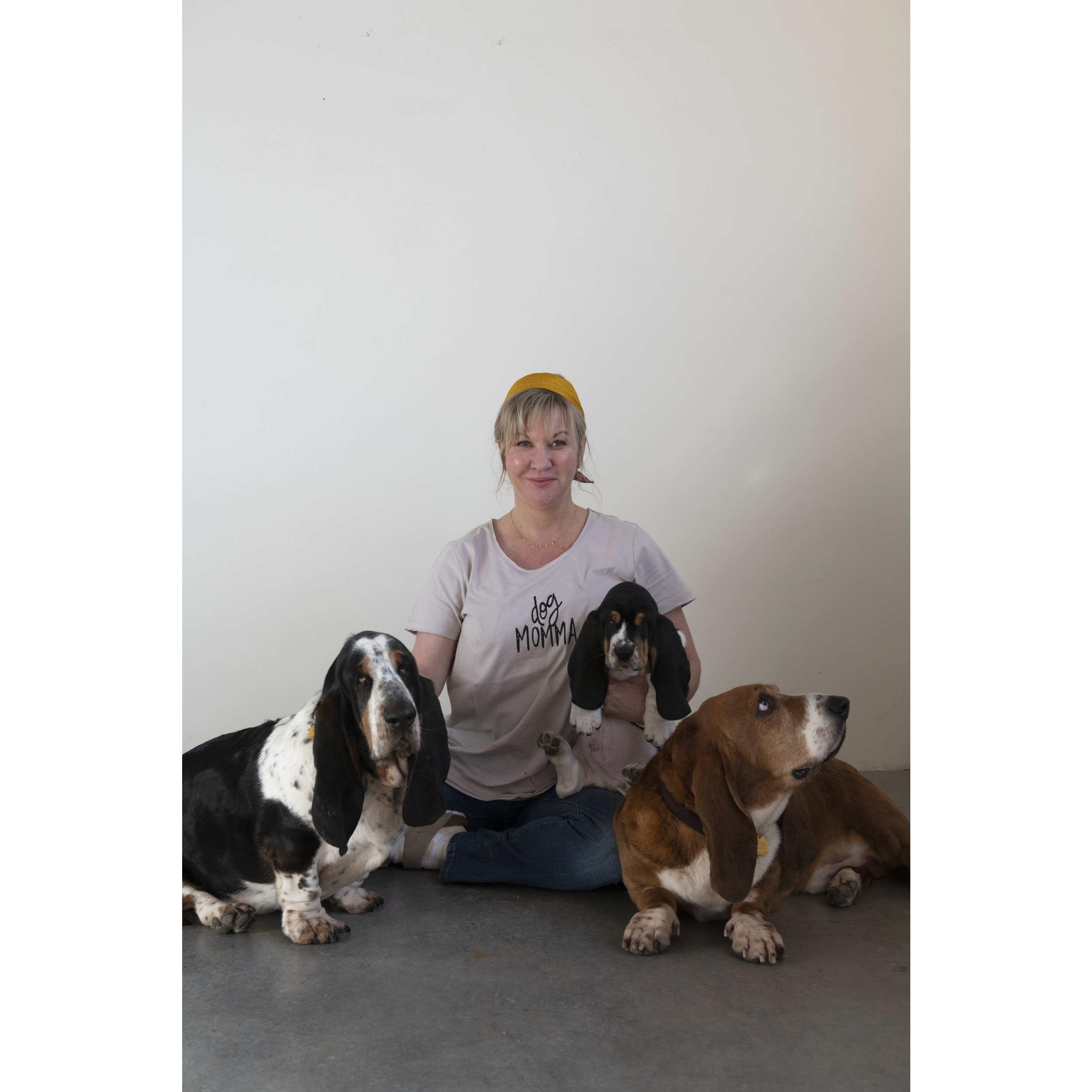 Catalog Name: Cotton Screen Printed T-Shirt "Dog Momma", Grey & Black, Medium