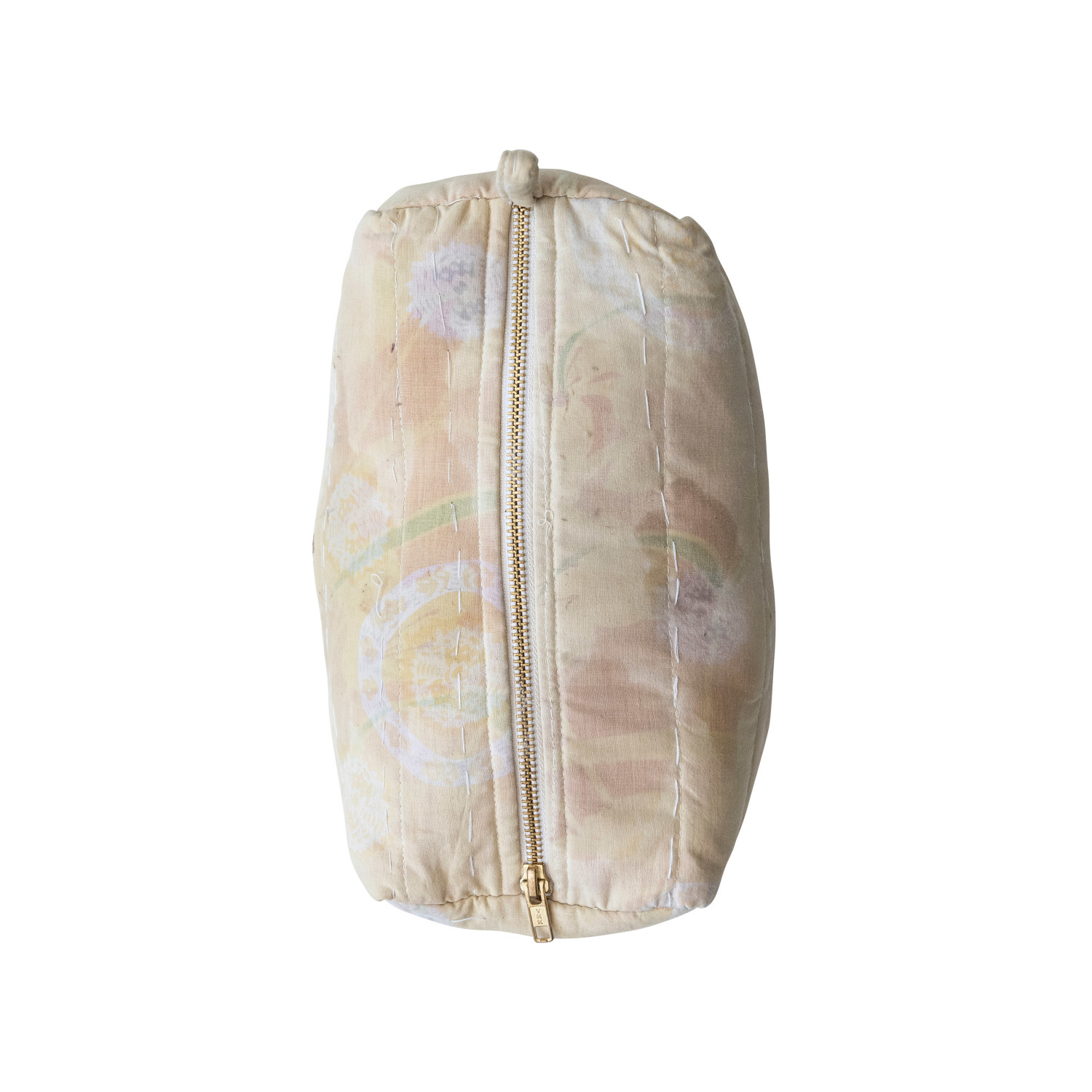 Catalog Name: 10"L x 5"W Vintage Cotton Kantha Quilted Zip Pouch, Bleached, Multi Color (Each One Will Vary)