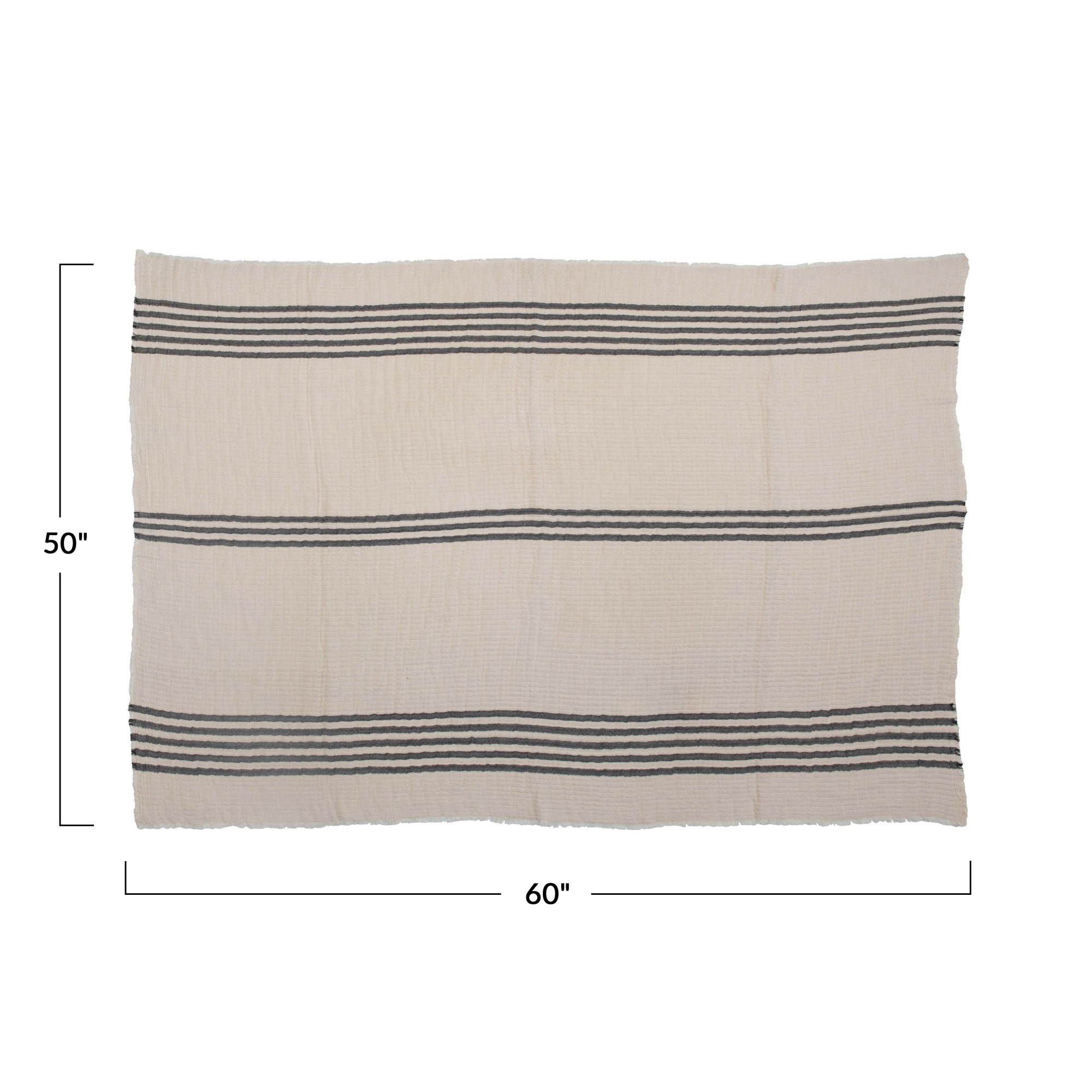 Catalog Name: 60"L x 50"W Woven Cotton Double Cloth Stitched Throw w/ Stripes & Frayed Edges, Cream Color & Black