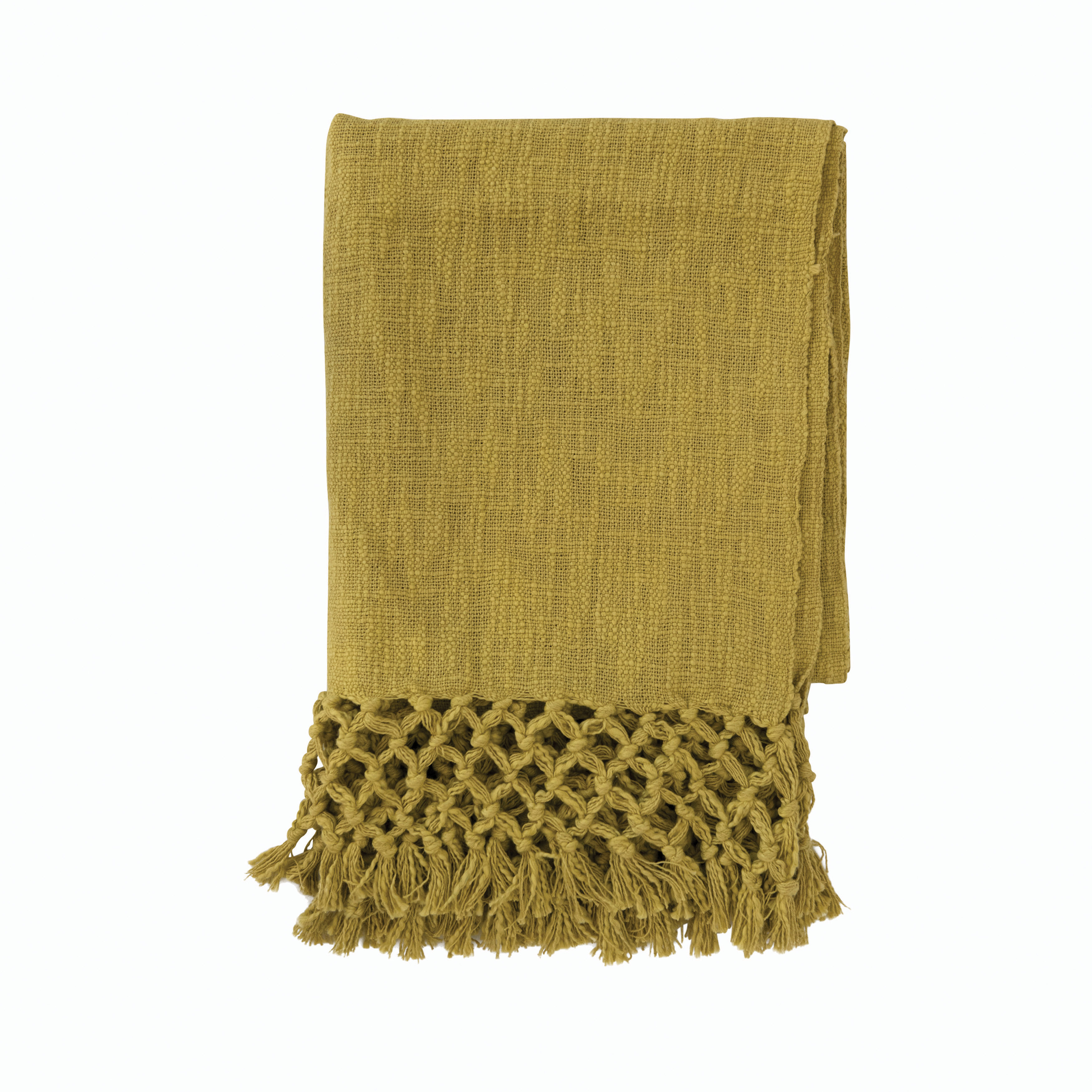 Catalog Name: 60"L x 50"W Woven Cotton Throw w/ Crochet & Fringe, Chartreuse