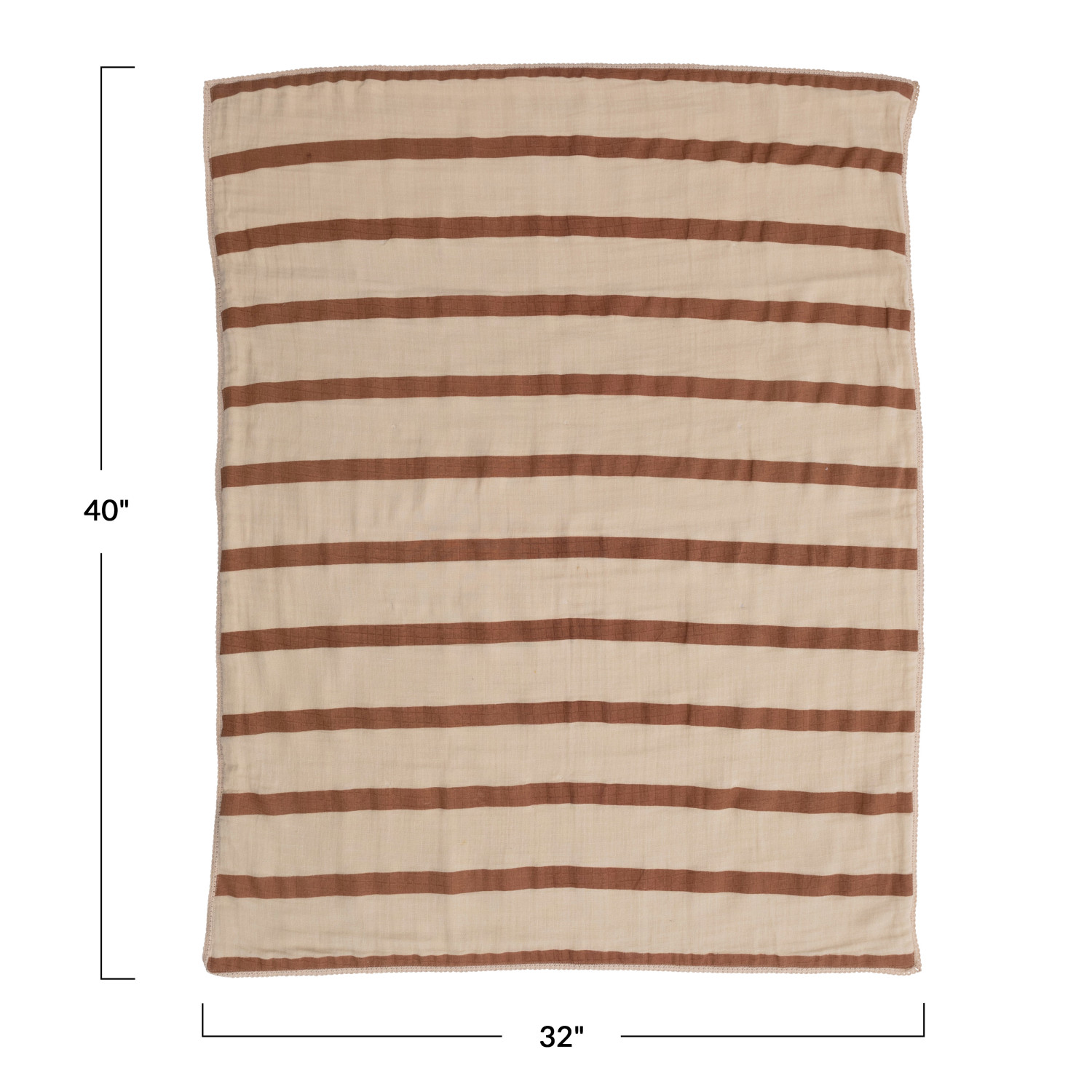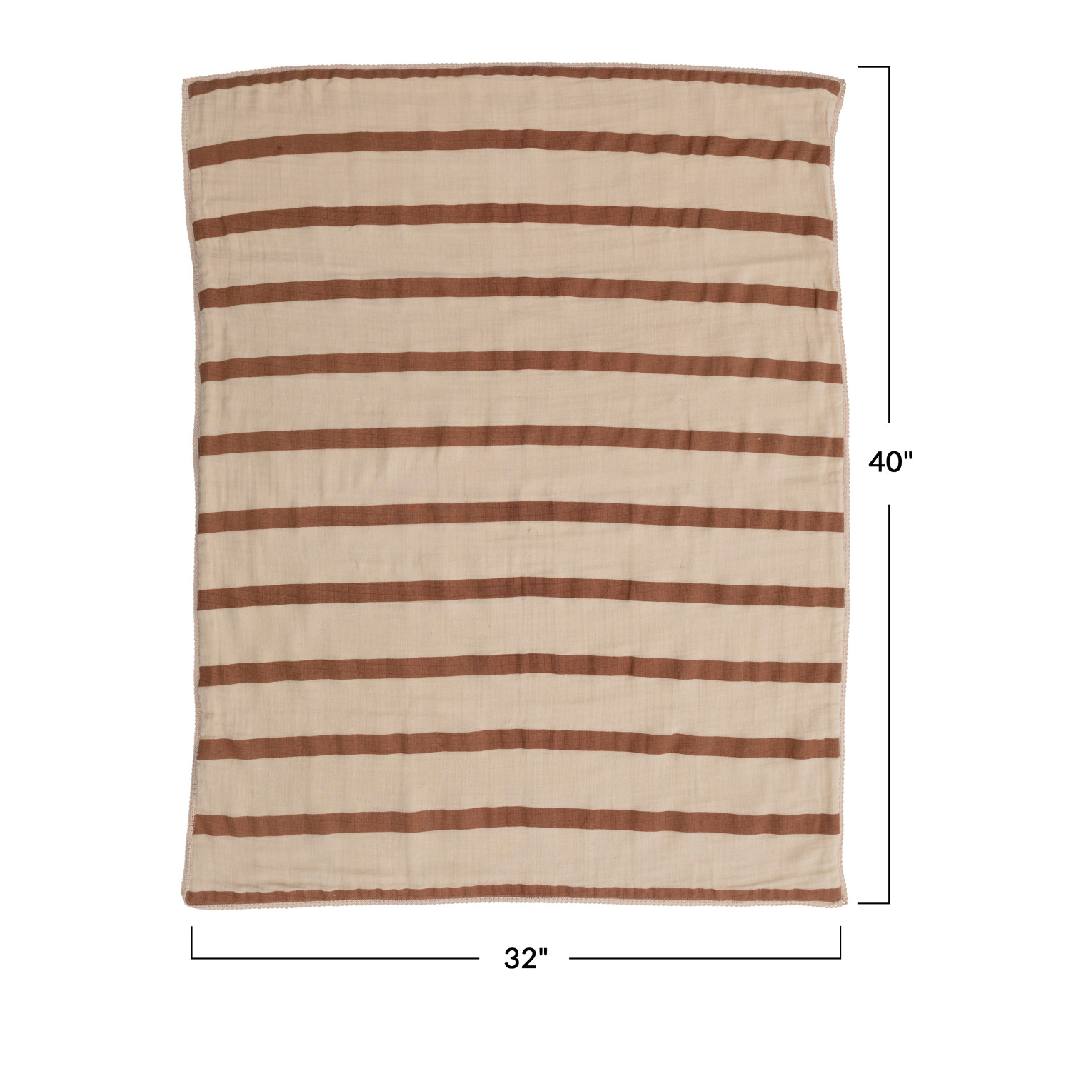 Catalog Name: 40"L x 32"W Cotton Double Cloth Printed Baby Blanket w/ Stripes in Bag, Brown & Natural