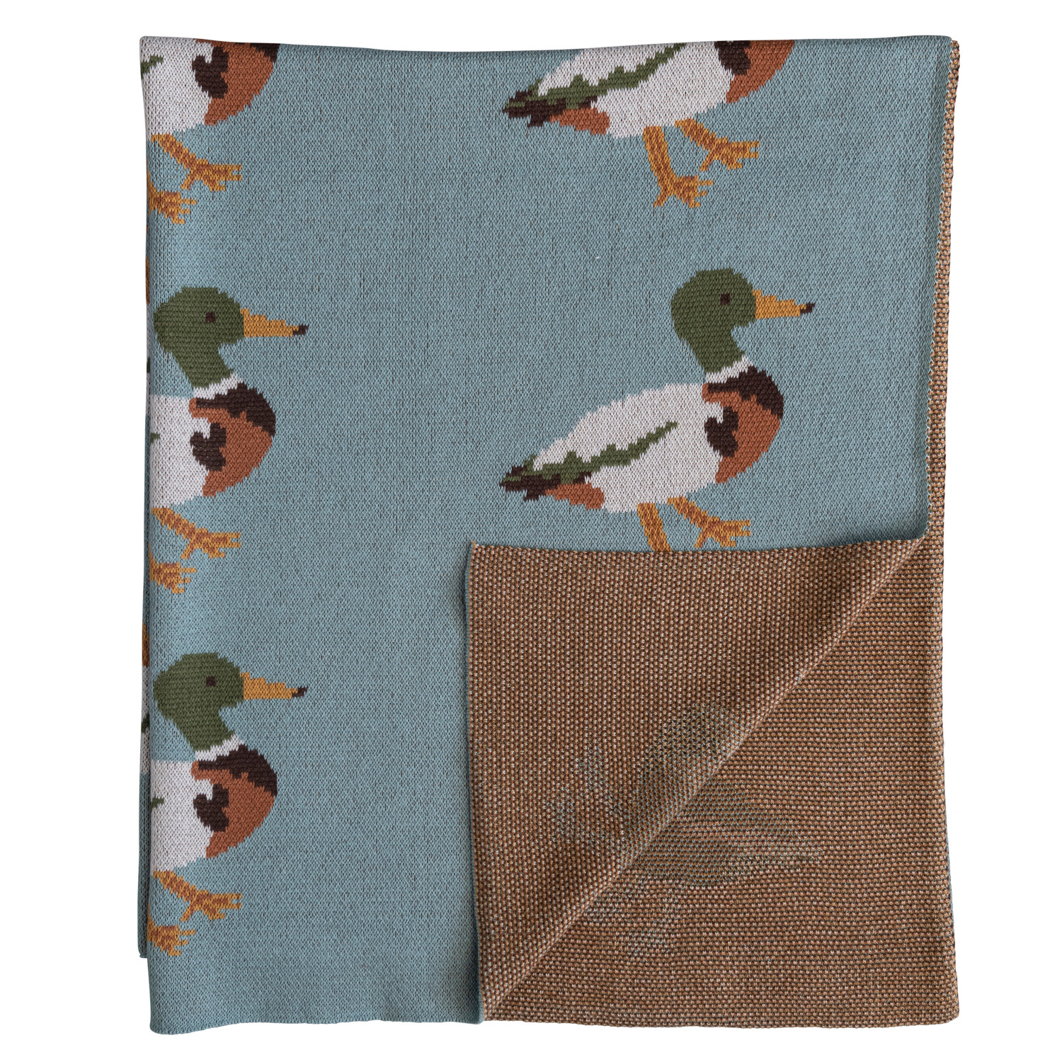Catalog Name: 40"L x 32"W Cotton Knit Baby Blanket w/ Ducks, Multi Color ©