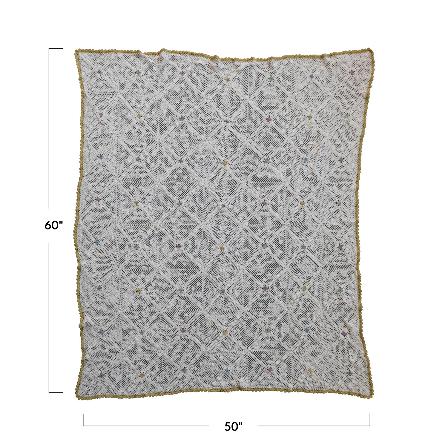 Catalog Name: 60"L x 50"W Recycled Cotton Crocheted Throw w/ Diamond Pattern, Multi Color