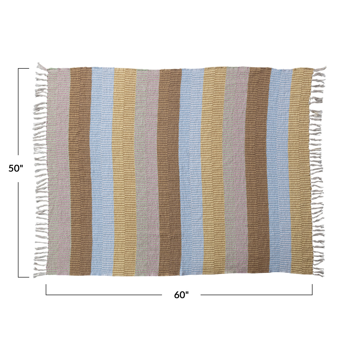 Catalog Name: 60"L x 50"W Woven Recycled Cotton Blend Throw w/ Stripes & Fringe, Multi Color