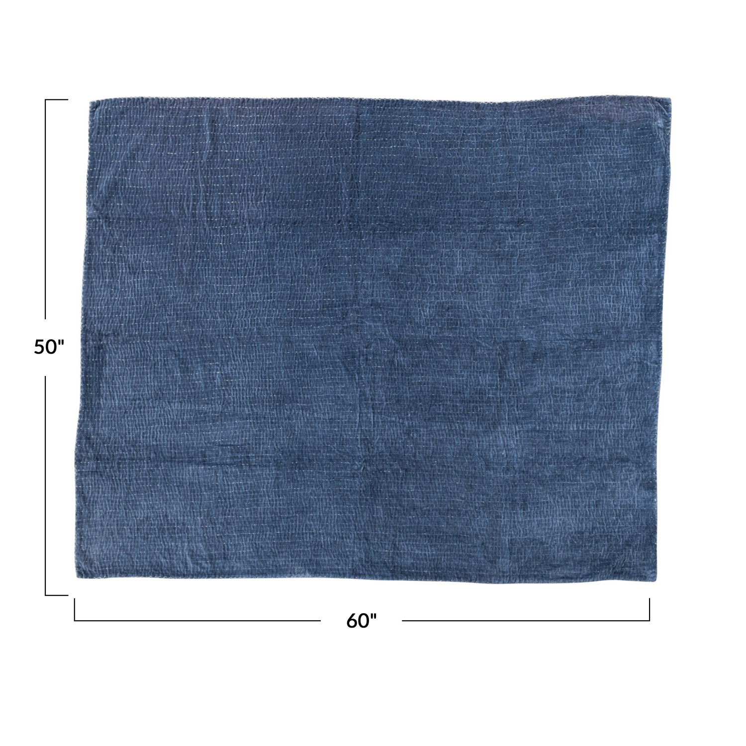 Add some luxury and coziness to the living space with this cotton velvet throw. This cotton throw features a navy blue velvet fabric with a hand-embroidered kantha stitch and blanket stitch edge, adding texture and charm to the decor. It's perfect for curling up on the couch, snuggling in bed, or relaxing on a chair, and can be paired with various styles like farmhouse, coastal, transitional, beach, and French country. Measuring 60 inches in length and 50 inches in width, it's a generous size for covering up. Enjoy the luxury and coziness of this cotton velvet throw, making the home more inviting and cozy.