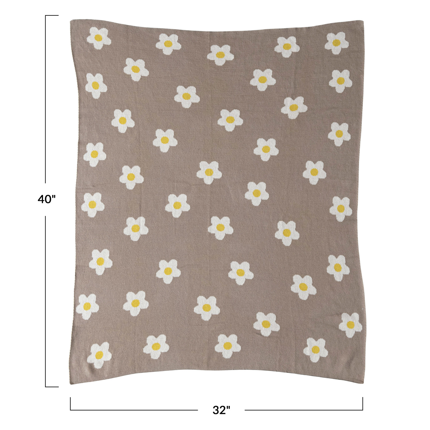 Catalog Name: 40"L x 32"W Cotton Knit Baby Blanket w/ Flowers, Beige, Natural & Yellow