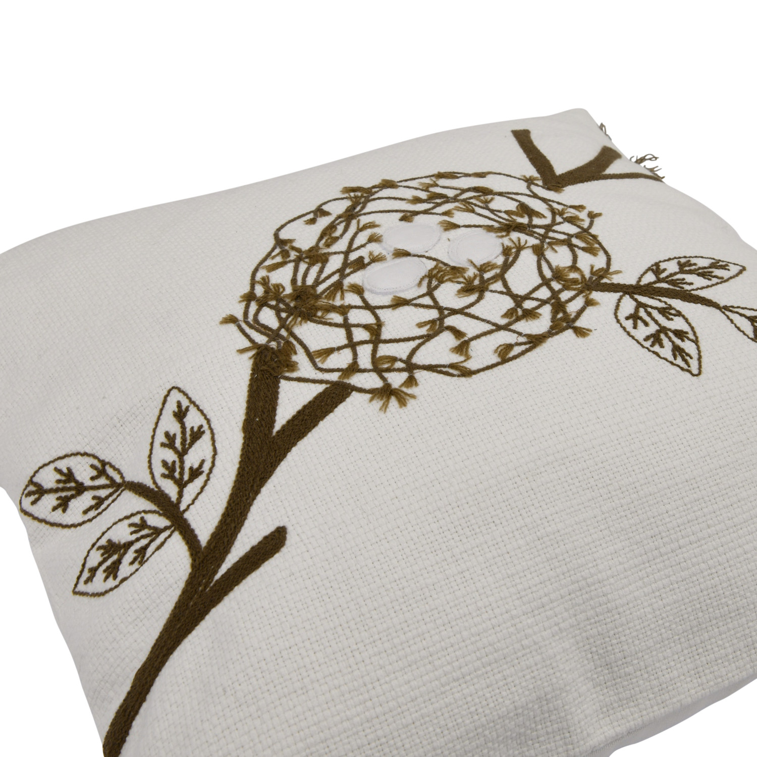 This cotton pillow instantly upgrades any couch or chair, and catches the eye effortlessly with its cotton embroidered pattern. Pillow is constructed of a 100% cotton matte cover on the front while the back is constructed of 100% cotton duck. Measures 2" H x 18" L x 18" W. For cleaning, machine wash with cold water on gentle setting with low tumble dry.