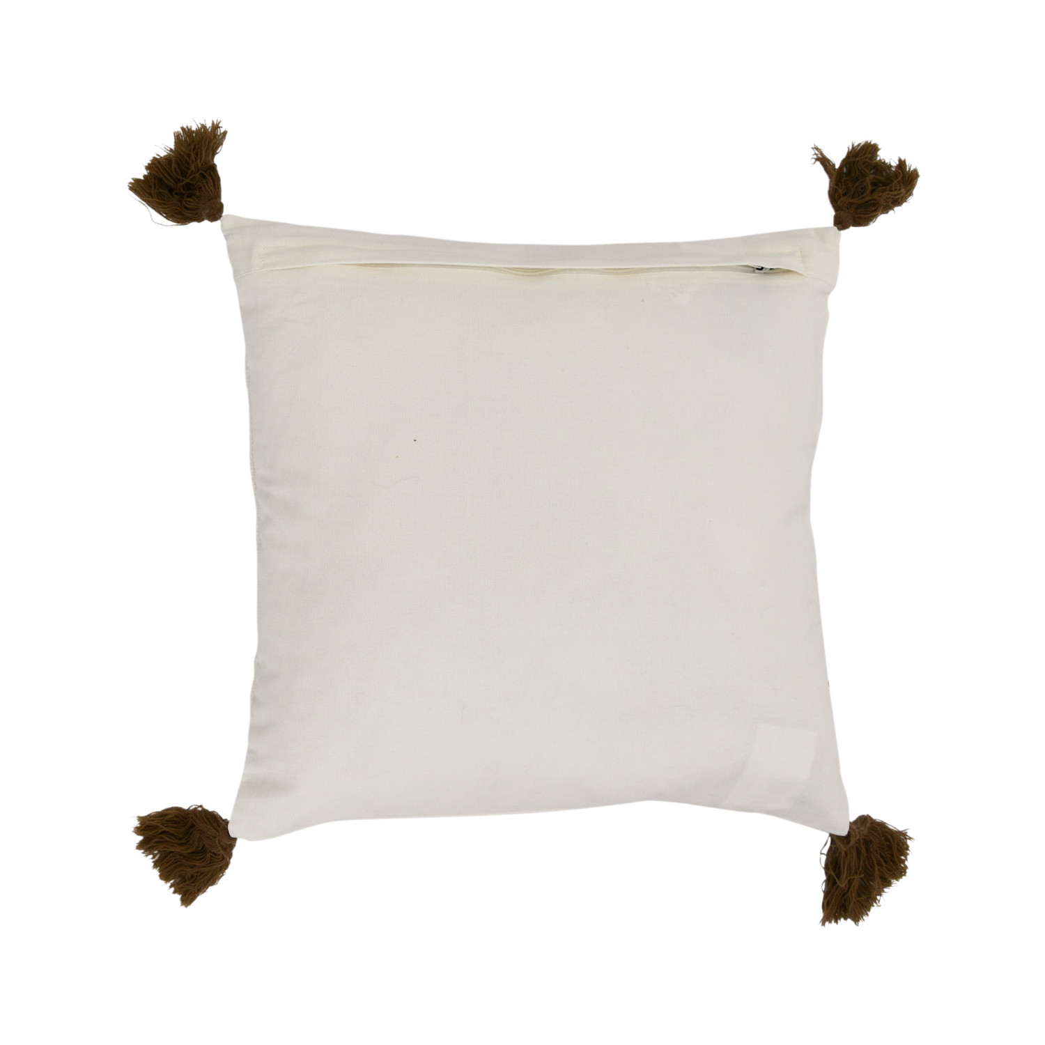 Catalog Name: 18" Square Cotton Embroidered Pillow w/ Nest & Tassels, Brown & Cream Color