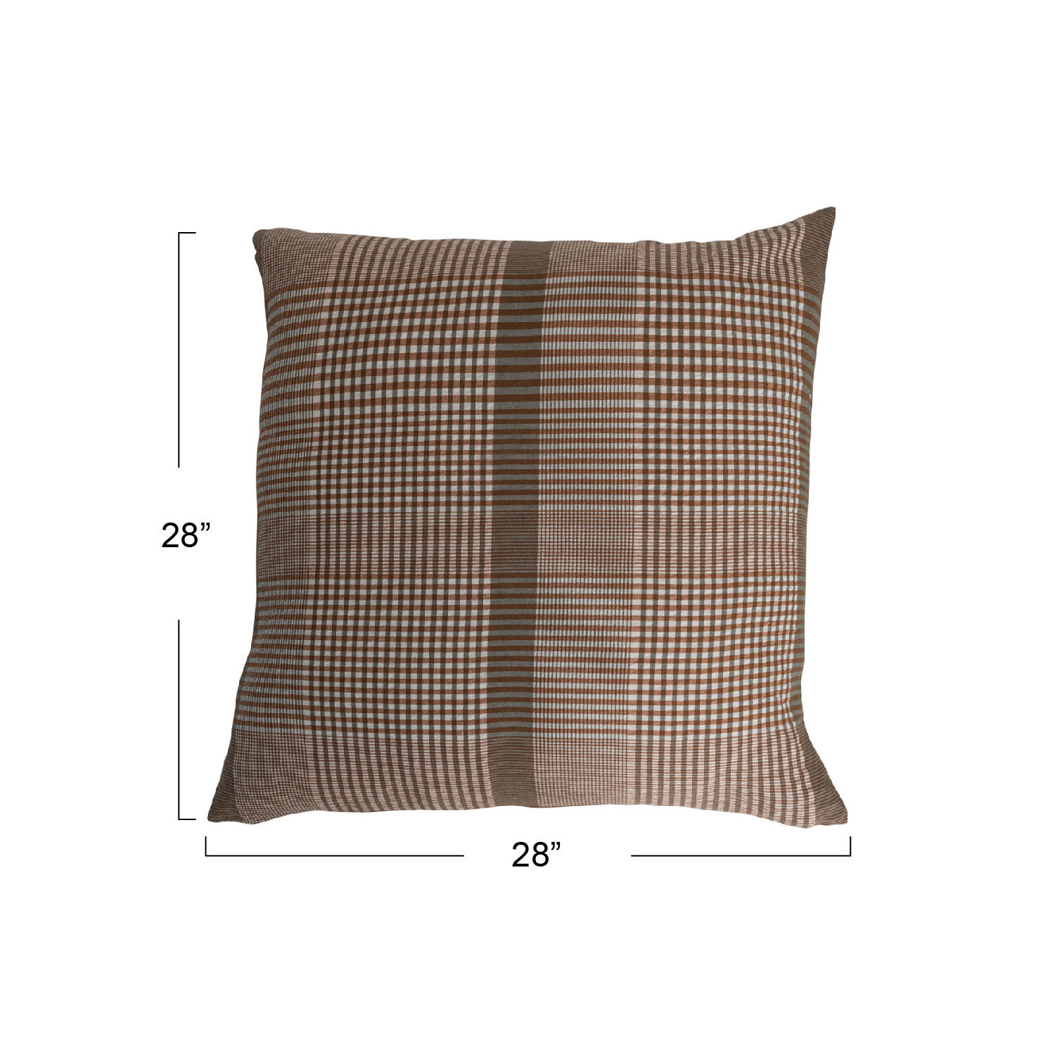 Catalog Name: 28" Square Woven Cotton Pillow, Brown & Cream Color Plaid